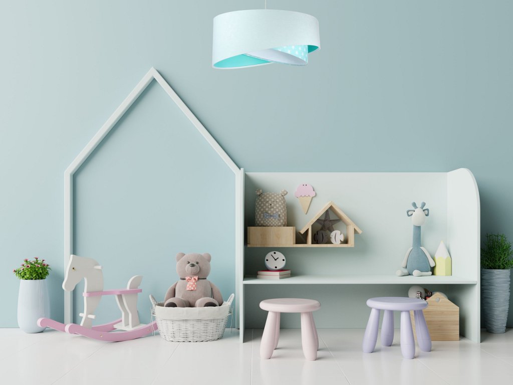 Ručne vyrobené závesné svietidlo Galaxy vyrobené z velúrovej bielo-modrej farbe s bodkami. Priemer svietidla je 50 cm. Skvele sa hodí do obývacej izby, nad jedálenský stôl alebo do spálne.