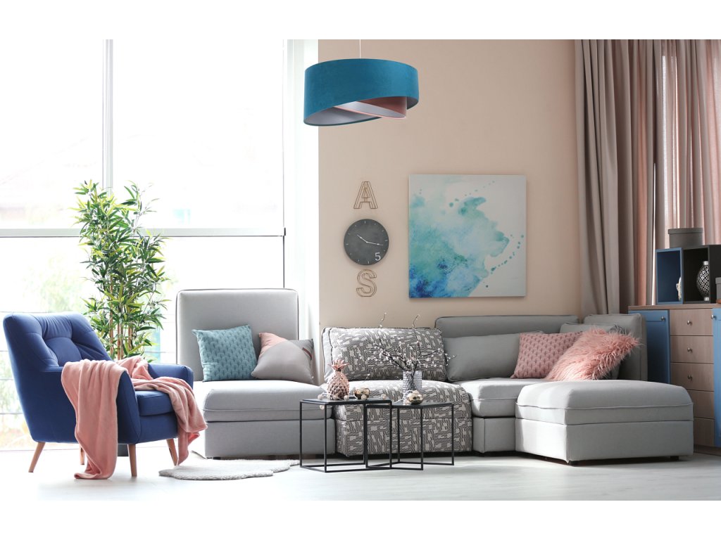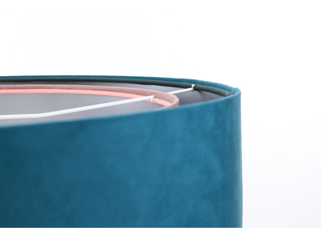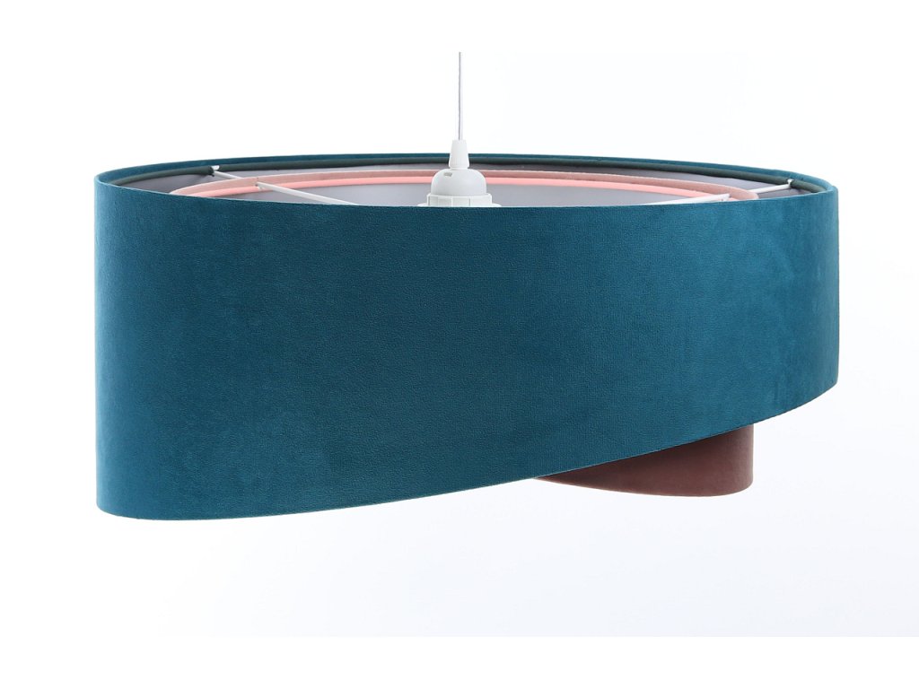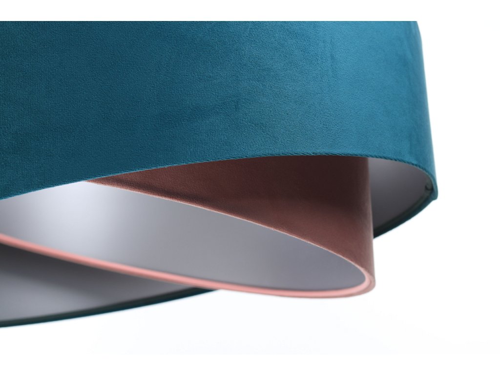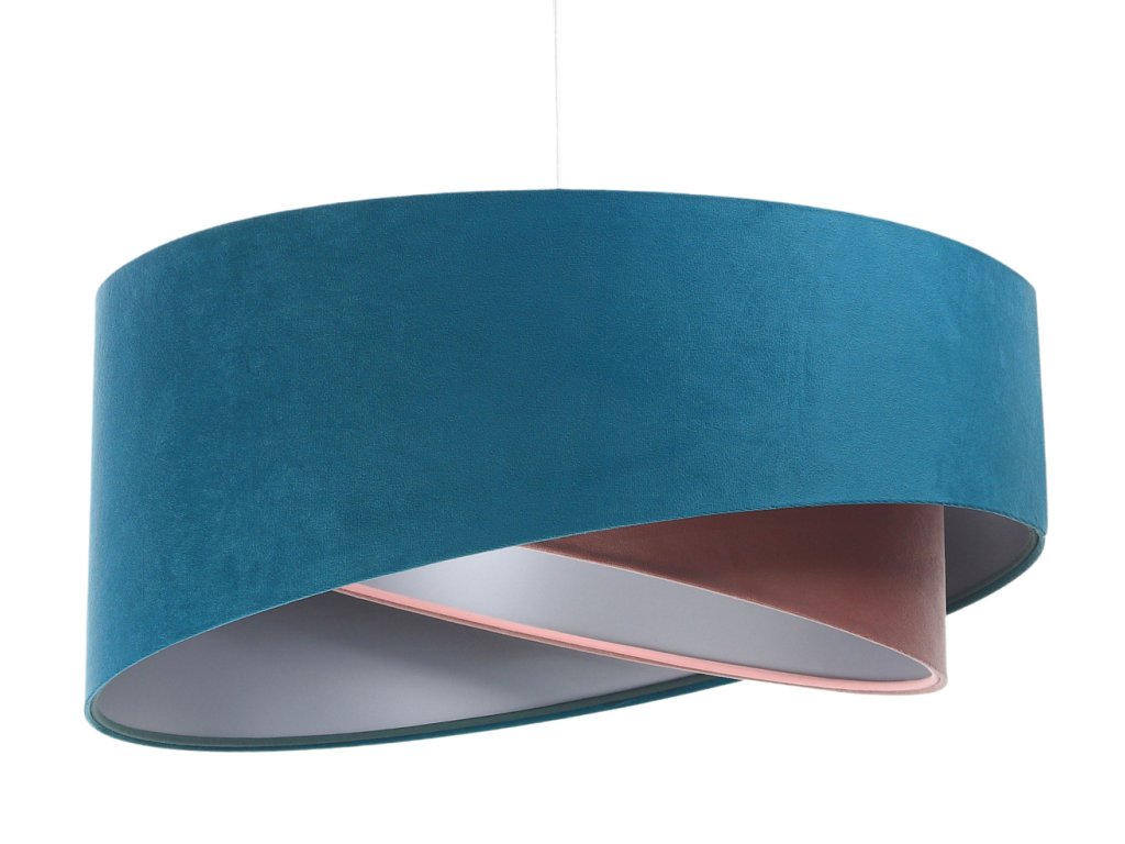 Ručne vyrobené závesné svietidlo Galaxy vyrobené z velúrovej tkaniny v modro-ružovej farbe. Priemer svietidla je 50 cm. Skvele sa hodí do obývacej izby, nad jedálenský stôl alebo do spálne.