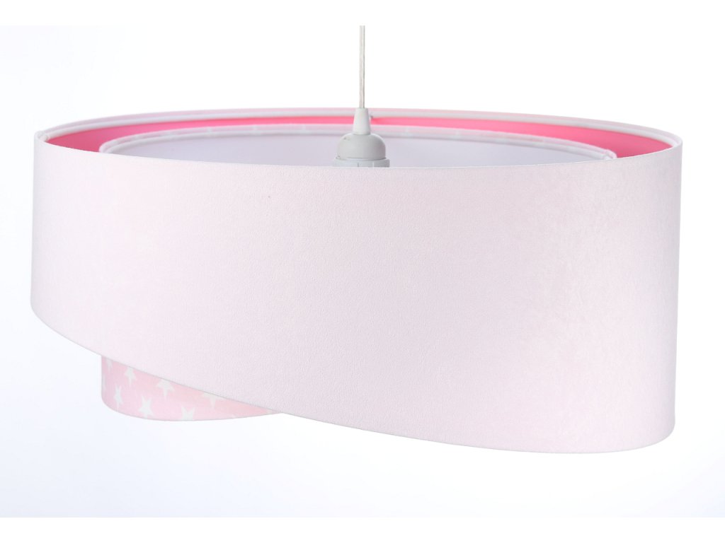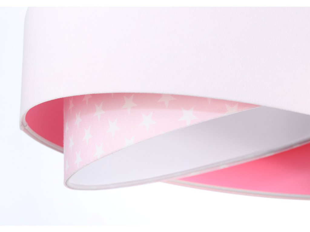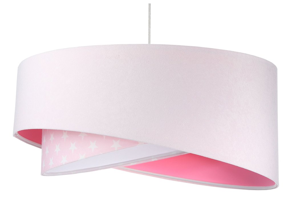 Ručne vyrobené závesné svietidlo Galaxy vyrobené z velúrovej tkaniny v ružovej farbe s hviezdičkami. Priemer svietidla je 50 cm. Skvele sa hodí do obývacej izby, nad jedálenský stôl alebo do spálne.