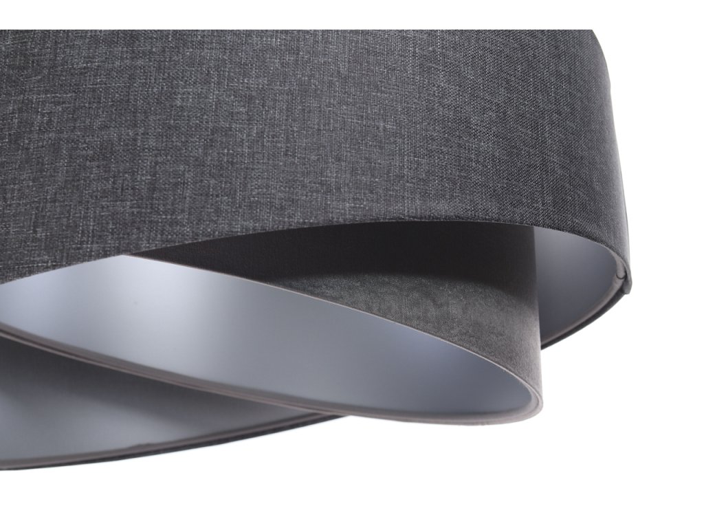 Ručne vyrobené závesné svietidlo Galaxy vyrobené z velúrovej tkaniny v šedej farbe a so striebornou farbou z vnútornej strany tienidla. Priemer svietidla je 50 cm. Skvele sa hodí do obývacej izby, nad jedálenský stôl alebo do spálne.