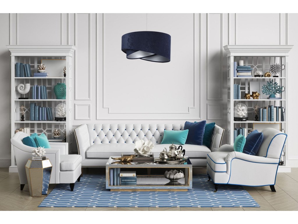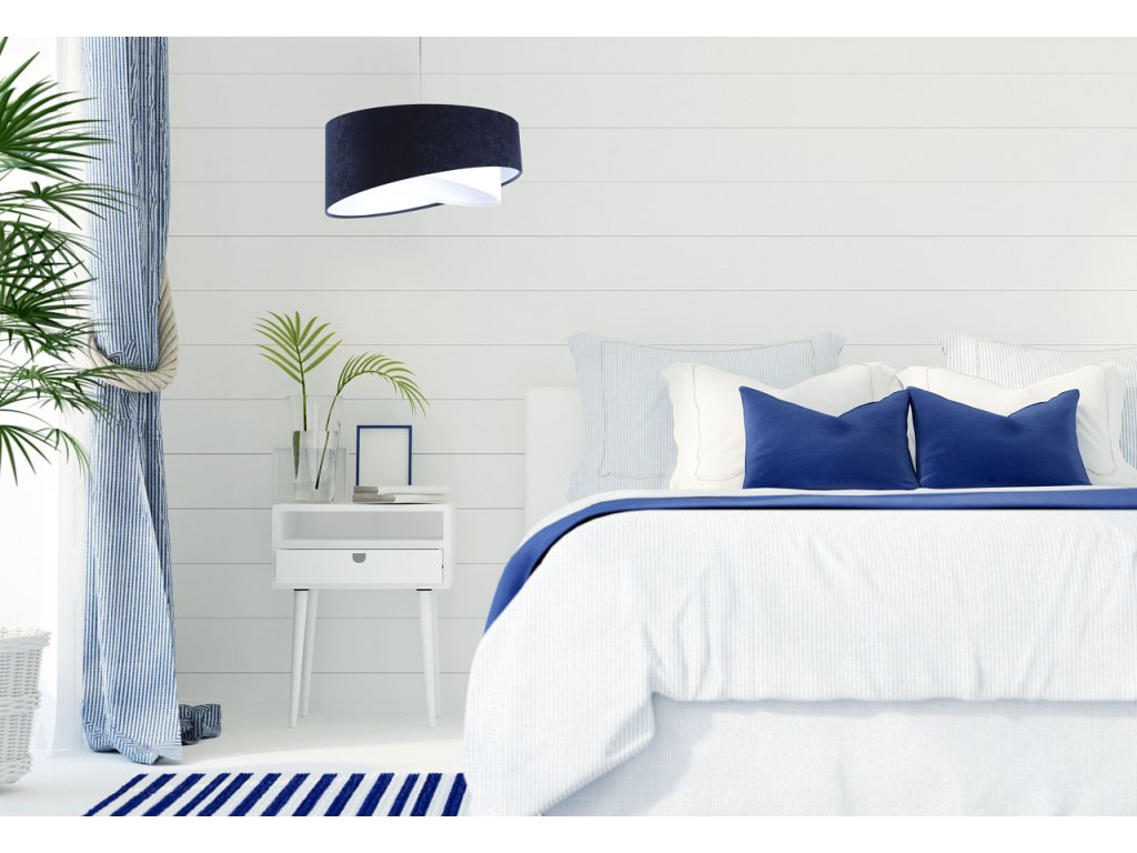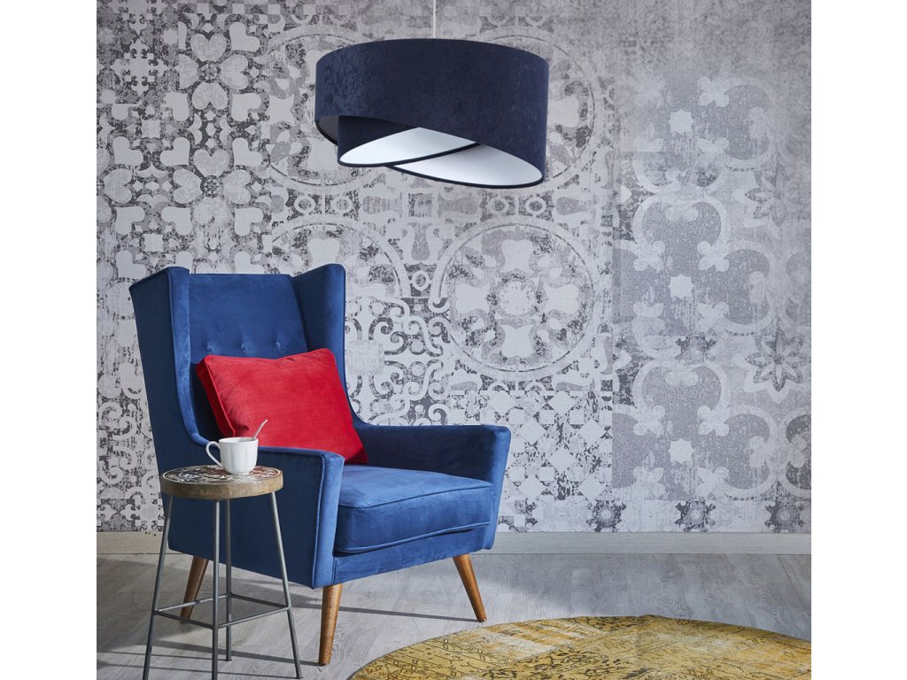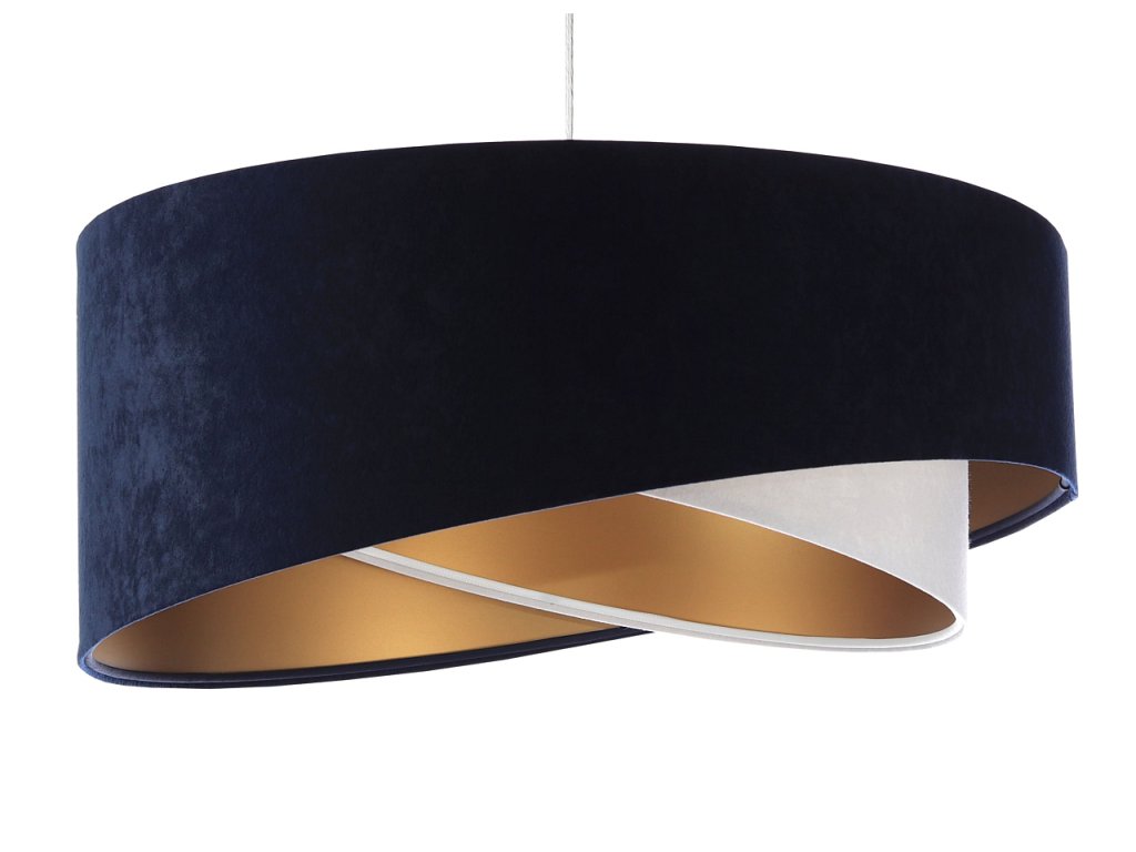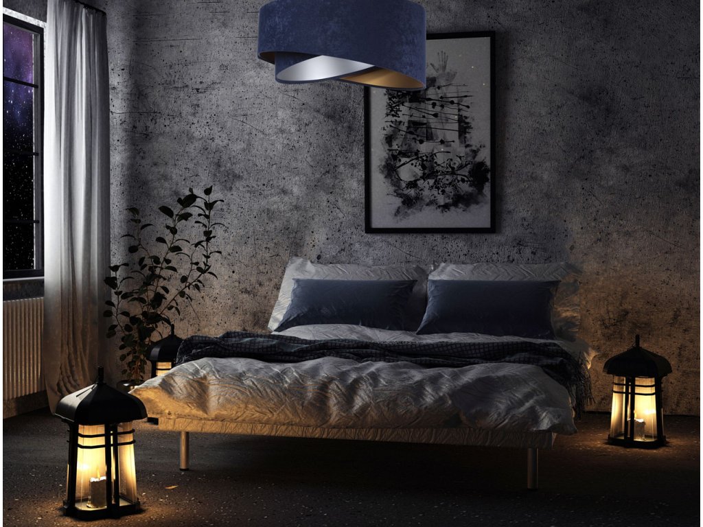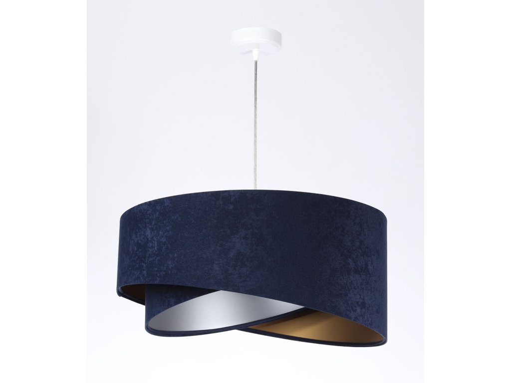 Ručne vyrobené závesné svietidlo Galaxy vyrobené z velúrovej tkaniny v tmavo modrej farbe v kombinácii s mnohými farebnými variantmi.