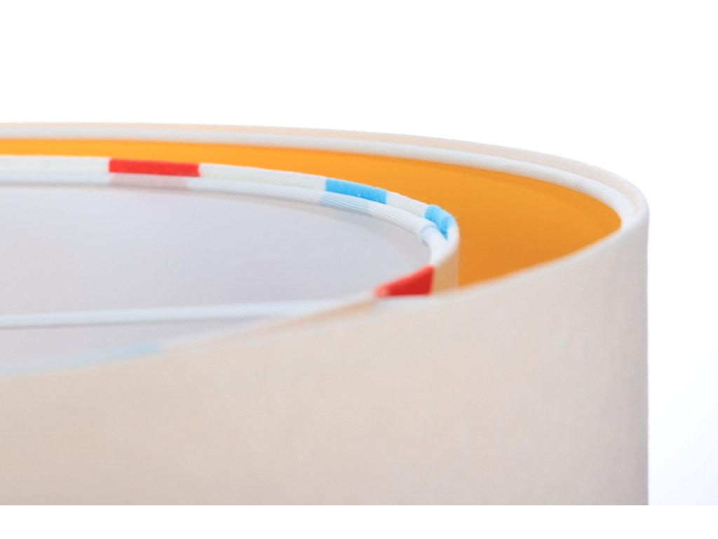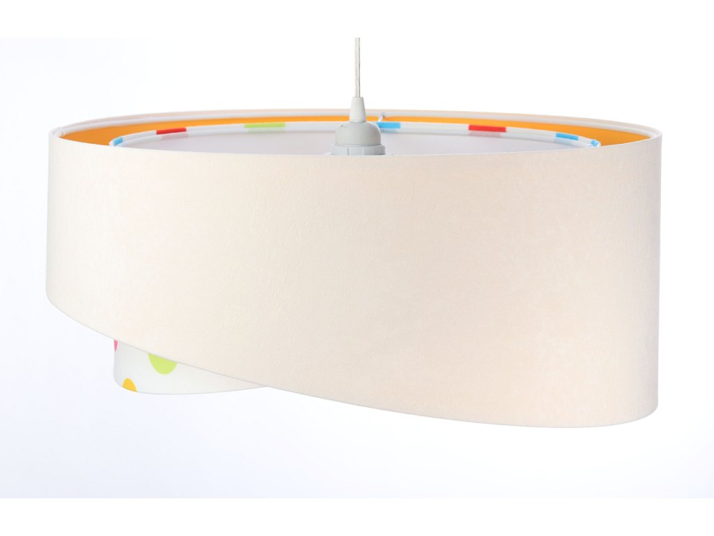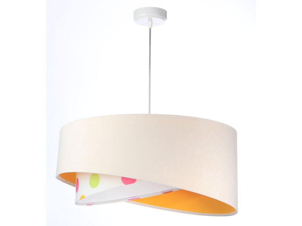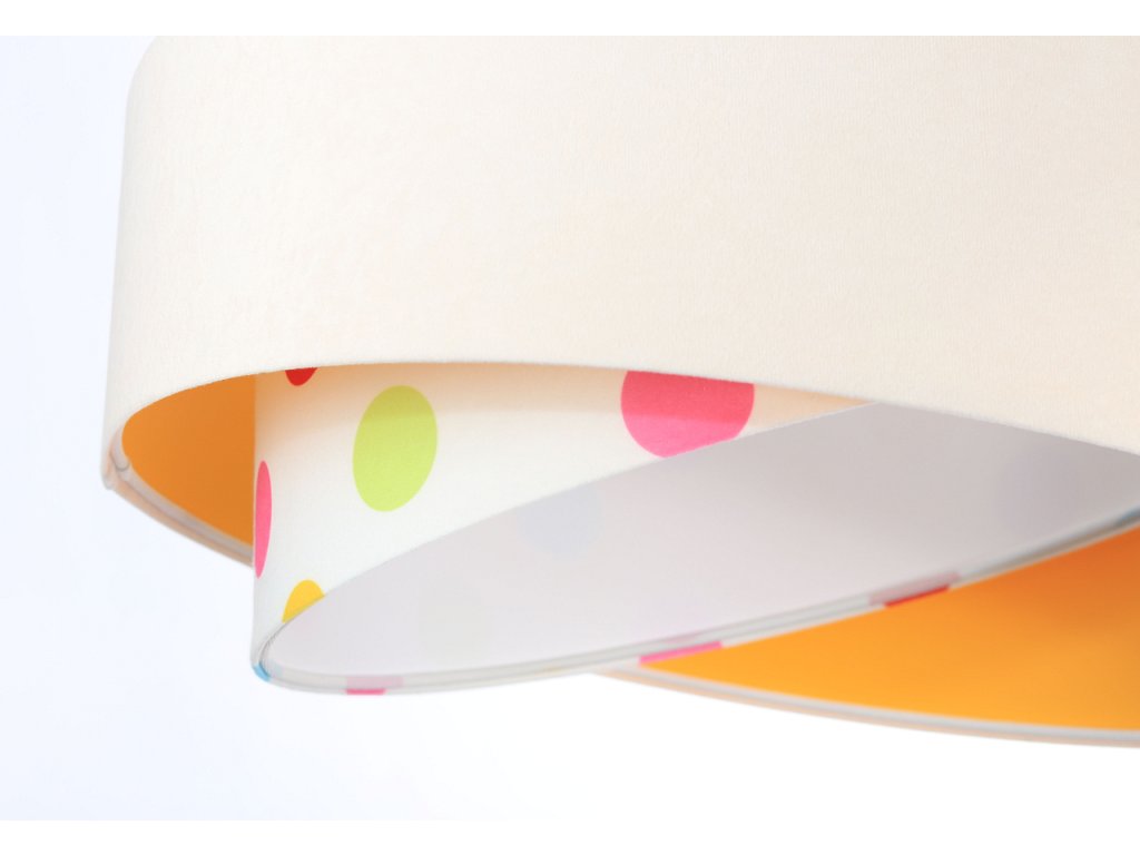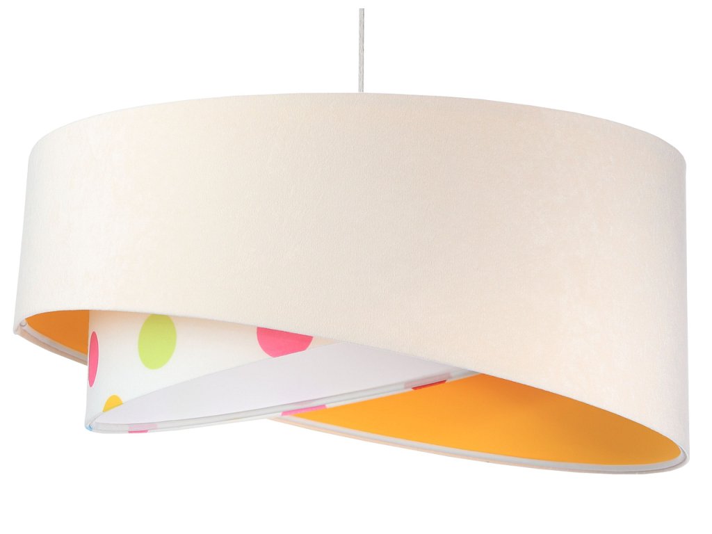 Ručne vyrobené závesné svietidlo Galaxy vyrobené z velúrovej tkaniny v žltej farbe s bodkami. Priemer svietidla je 50 cm. Skvele sa hodí do obývacej izby, nad jedálenský stôl alebo do spálne.