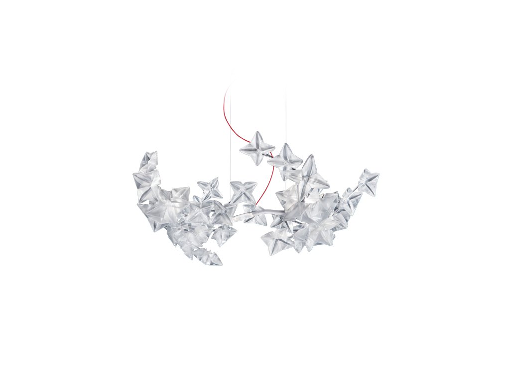 Jedinečné, jemne farebné lomy Hanami sú rozmiestnené v ručne skladaných kvetoch vyrobených z luxusného materiálu Lentiflex®, ktorý vytvára odlesky podobné diamantom, z ktorých každá je upevnená na lakovanom oceľovom a polykarbonátovom ráme s pevnými stmievateľnými LED žiarovkami G9.