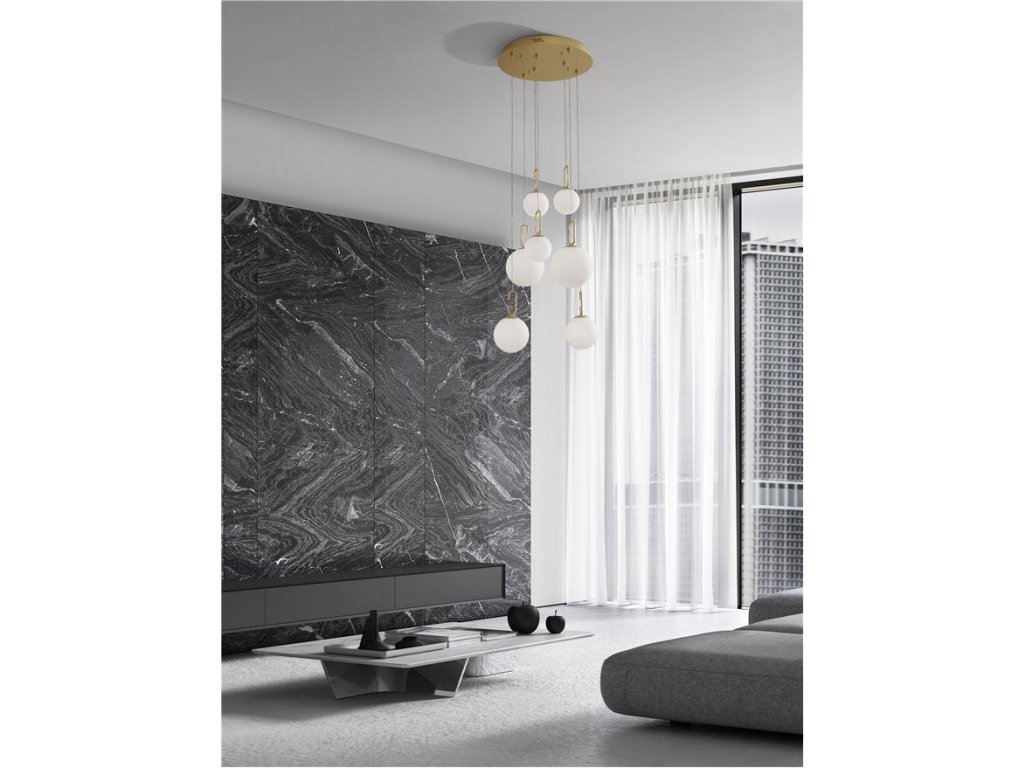 Závesné svietidlo HOOK saténový zlatý kov a opálové biele sklo LED 52W 3000K stmievateľné
