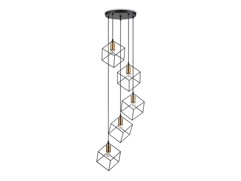 Závesné svietidlo Ice SP5 z kolekcie interiérového osvetlenia talianskej značky Ideal Lux má veľmi zaujímavé spracovanie. Tvorí ho guľatá základňa s priemerom 30 cm a päť zavesených kubických difúzorov s rozmermi 15 x 15 x 15 cm, ktoré sú vyrobené z lakovaného kovu v matne čiernej povrchovej úprave. Objímky sú pokryté saténovo mosadznou farbou s päticou E27 o maximálnom príkone 5 x 60 W. Zdroje nie sú súčasťou balenia, dodávateľ odporúča použiť LED žiarovky (obj. kód 101286) s príkonom 4W, svietivosťou 360lm a teplotou chromatickosti 3000K (neut. Ich výhodou je nízka spotreba elektrickej energie a dlhá doba životnosti až 15 000 hodín. Čierne plastové prívodné káble je možné výškovo nastaviť od 60 cm do 245,5 cm dĺžky. Krytie IP20 je určené pre vnútornú montáž. Priemer celého svietidla je 50 cm.Dodatočné parametre