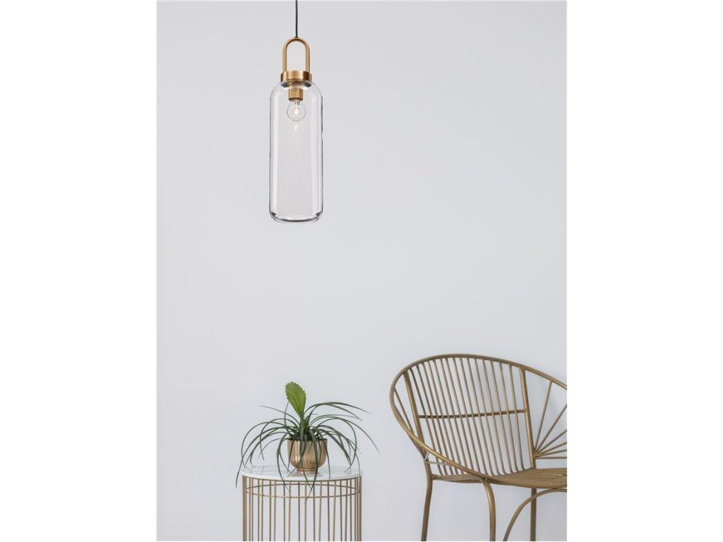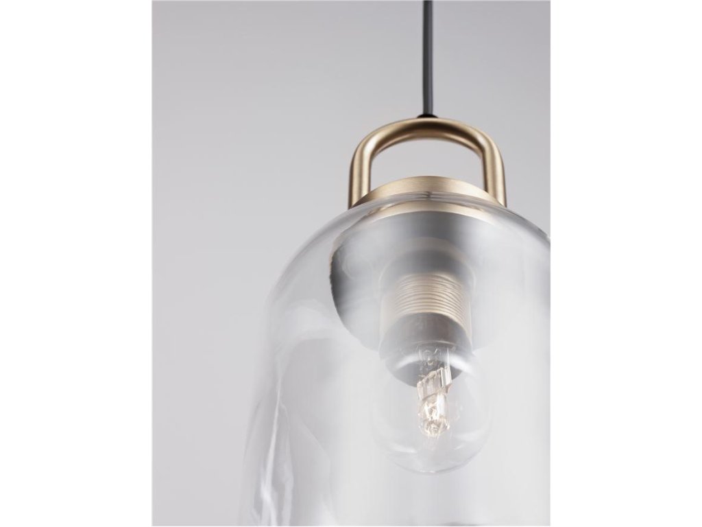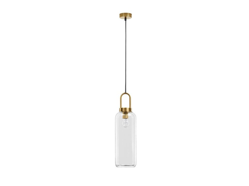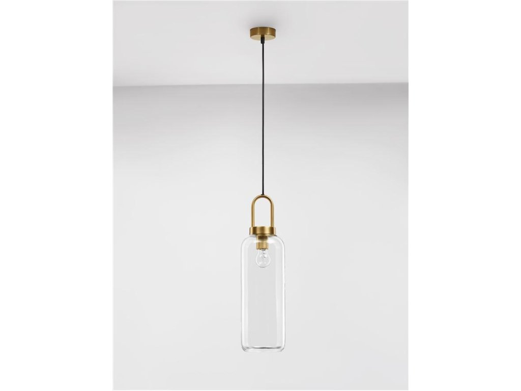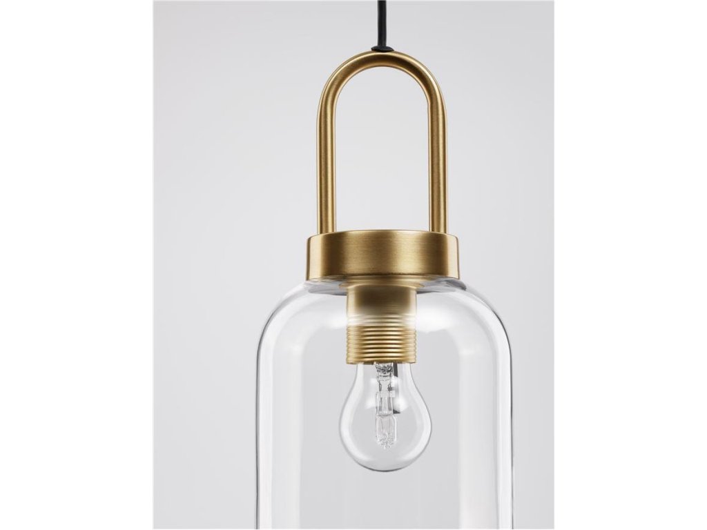 Závesné svietidlo IRVINE číre sklo čierny kábel mosadzný zlatý kov E27 1x12W