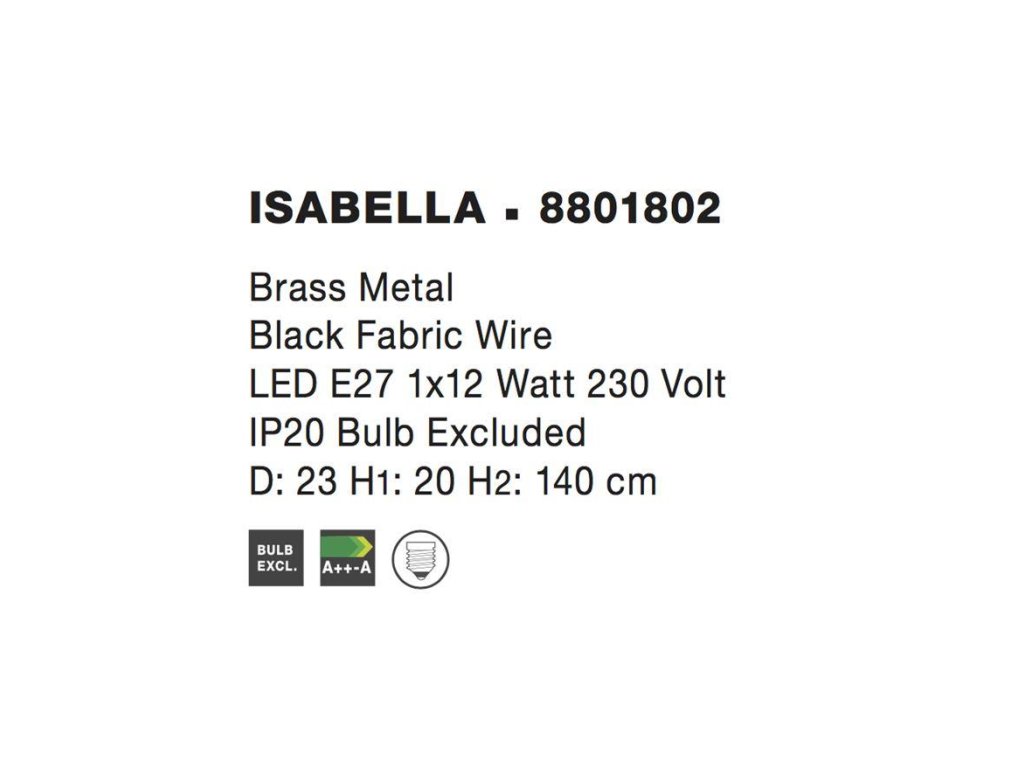 Závesné svietidlo ISABELLA, 23cm, E27 1x12W