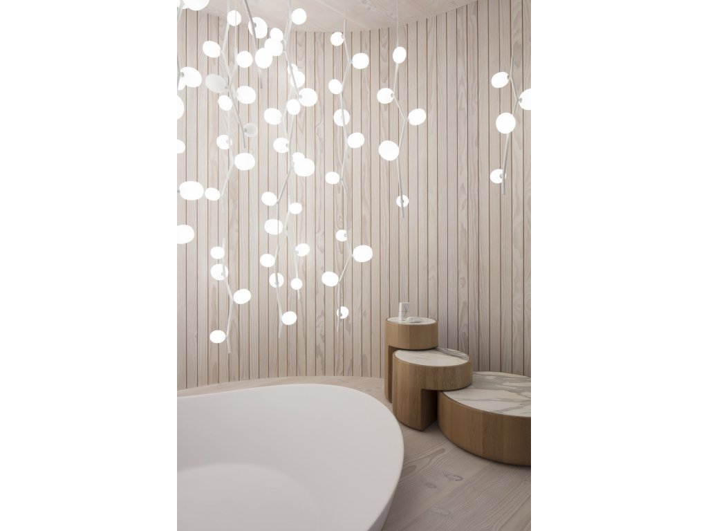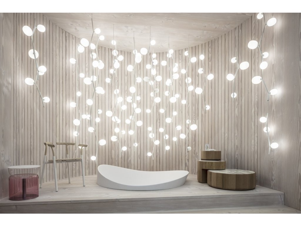 Kolekcia IVY, inšpirovaná prírodou a jej všestrannosťou, ponúka takmer nekonečné možnosti jedinečnej svetelnej kompozície. Svietidlá, zavesené na špeciálnych koaxiálnych kábloch, sa ľahko inštalujú a kombinujú vďaka modulárnym komponentom. Variabilné a precízne v remeselnom spracovaní až do najmenších detailov, sú dodávané v troch veľkostiach buď v matnom svetlo ružovom, opálovom alebo dymovom skle. Výrazné ručne fúkané sklenené prvky môžu byť usporiadané do zdanlivo nekonečnej palety kompozícií a právom si držia svoje miesto medzi umeleckými riešeniami osvetlenia na mieru, ideálnymi pre verejné priestory, hotely, kancelárie a mnoho ďalších projektov.