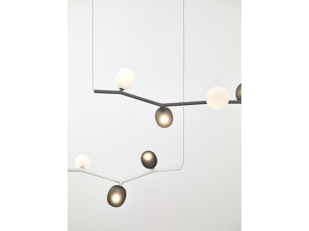 Svietidlá sú zavesené na špeciálnych koaxiálnych kábloch, ľahko sa inštalujú a kombinujú vďaka modulárnym komponentom. Sú dodávané v troch veľkostiach buď v matnom svetlo ružovom, opálovom alebo dymovom skle. Výrazné ručne fúkané sklenené prvky môžu byť usporiadané do zdanlivo nekonečnej palety kompozícií. Kolekcia Ivy je ideálna pre verejné priestory, hotely, kancelárie a mnoho ďalších projektov.
