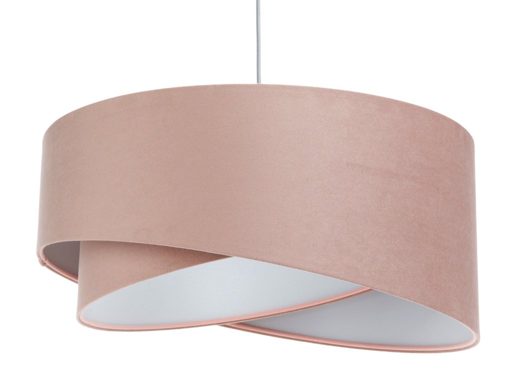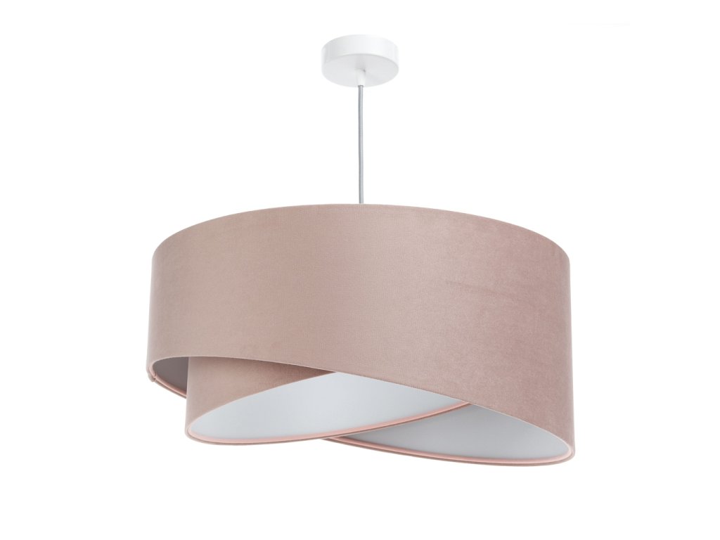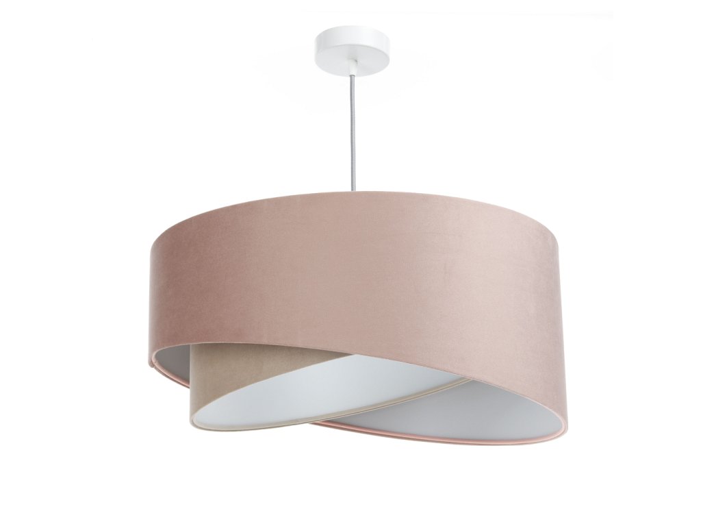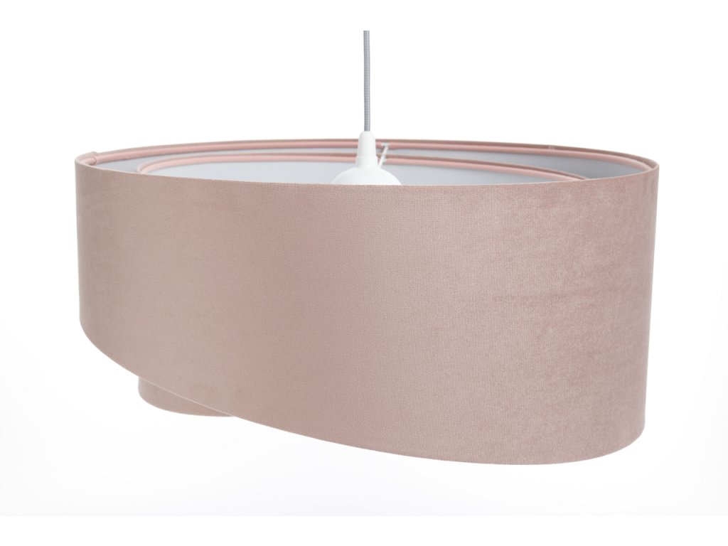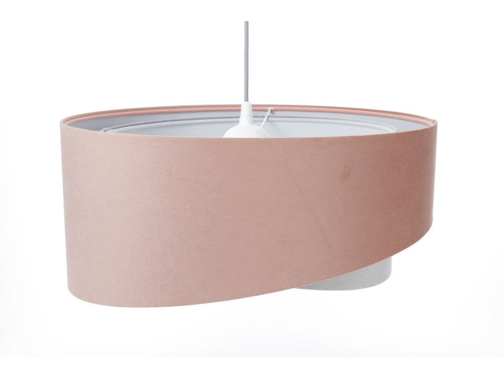 Závesné svietidlo JASMIN v ružovej farbe v kombinácii s tromi farebnými variantmi - šedá, béžová a ružová. Tienidlo je odolné voči UV žiareniu, takže tkanina počas používania nevybledne. Priemer svietidla je 40 cm. Skvele sa hodí do obývacej izby či spálne.