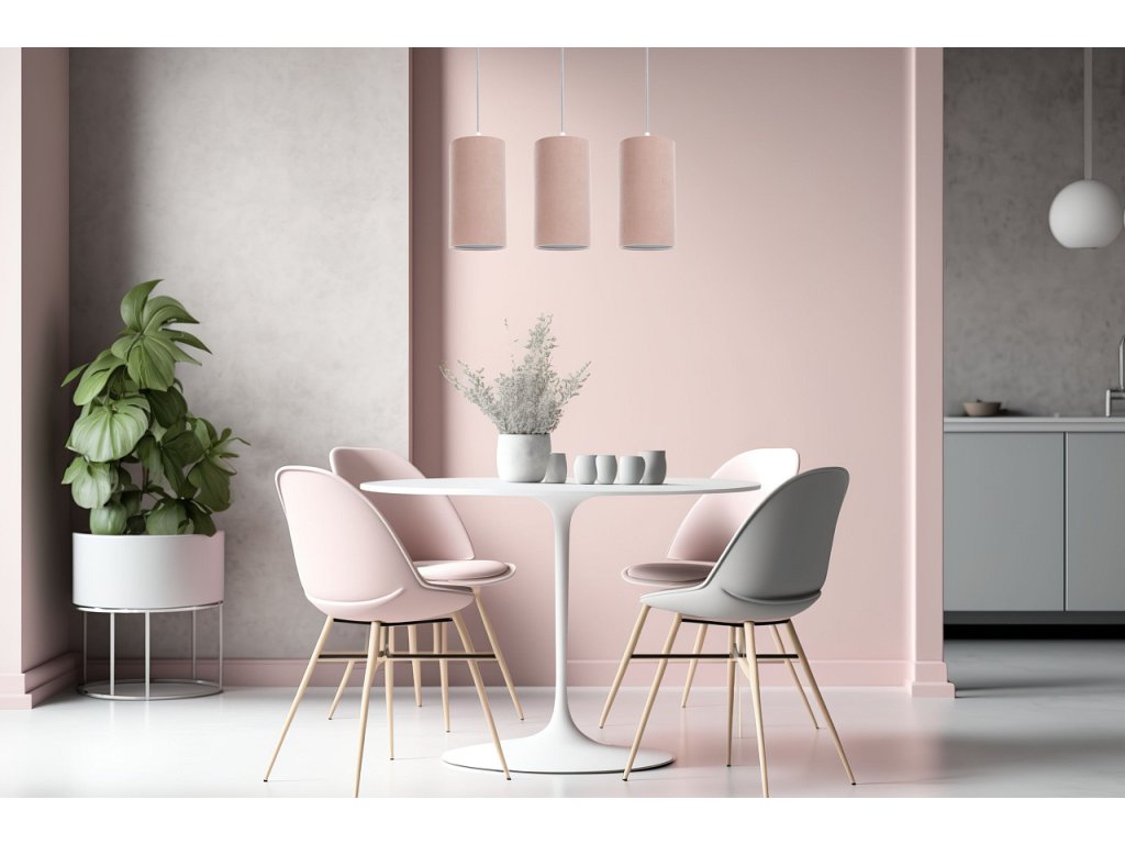 Závesné svietidlo JASMIN s tromi svetelnými zdrojmi v štyroch farebných variantoch - šedá, ružová, ružovo-šedá a šedo-ružová. Tienidlo je odolné voči UV žiareniu, takže tkanina počas používania nevybledne. Dĺžka svietidla je 88 cm. Skvele sa hodí do obývacej izby či spálne.