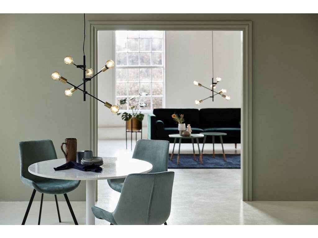 Dizajnové závesné svietidlo Josefine v industriálnom štýle s nastaviteľnými ramenami (možno otáčať o 360 °) je krásnou reinterpretáciou tradičného lustra, ktorý sa skvele hodí do obývacej izby alebo kuchyne. Prísny priemyselný dizajn krásne kontrastuje s ozdobnými detailmi v podobe mosadzných objímok na žiarovky.