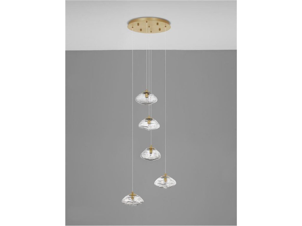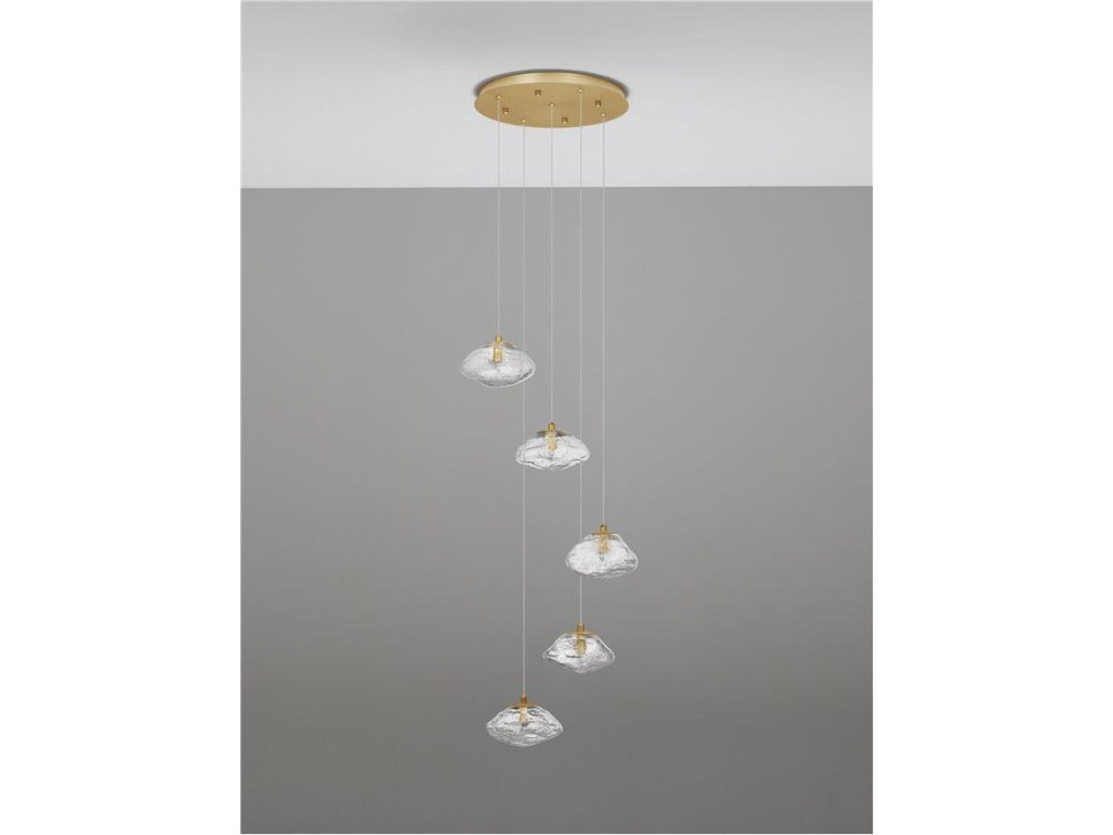 Závesné svietidlo KING mosadzný zlatý kov fúkané číre sklo G9 3x5W