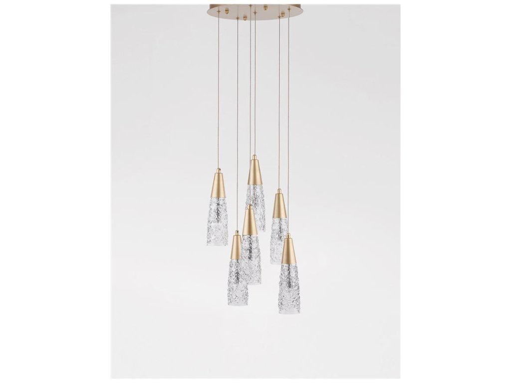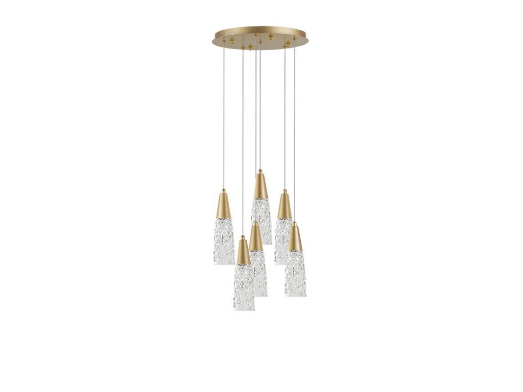 Závesné svietidlo kovAC brúsená zlatá Oceľ a číre štruktúrované sklo G9 6x5W