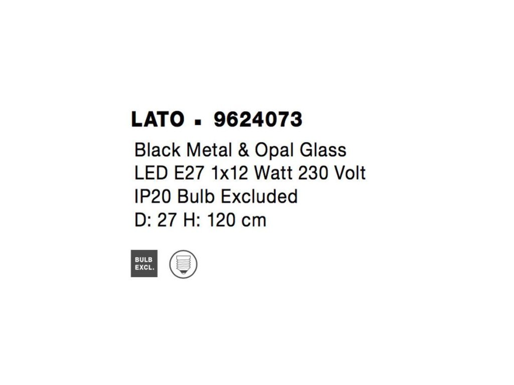 Závesné svietidlo LATO je k dispozícii v čiernej farbe s látkovým drôtom a skleneným tienidlom. Rozmery svietidla sú 27x120 cm.