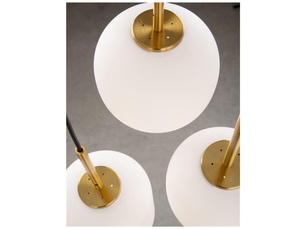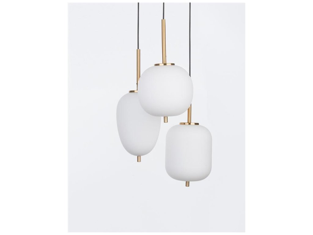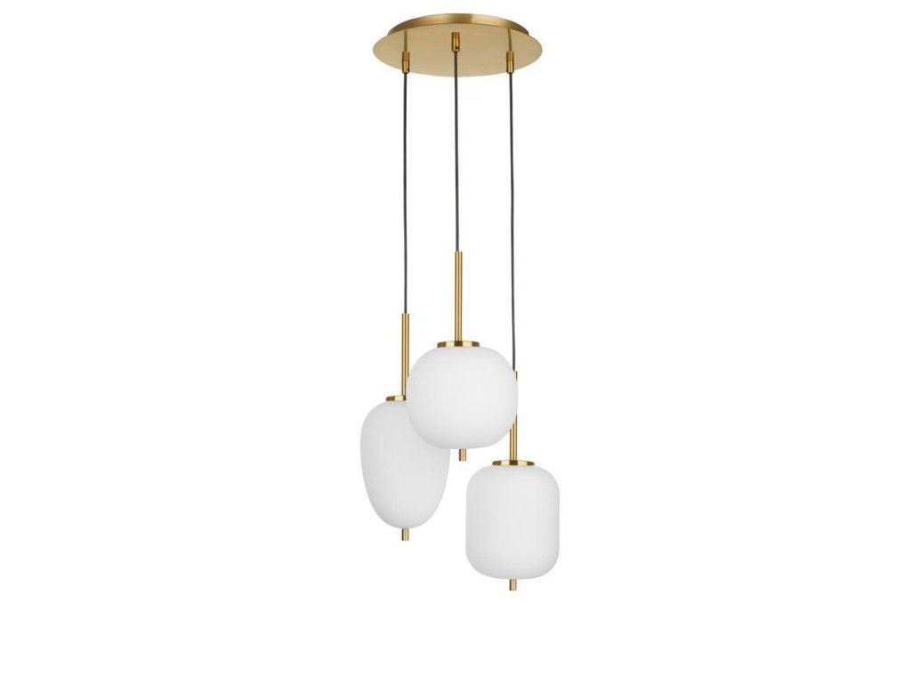 Závesné svietidlo LATO opálové sklo antický mosadzný kov čierny kábel E14 3x5W