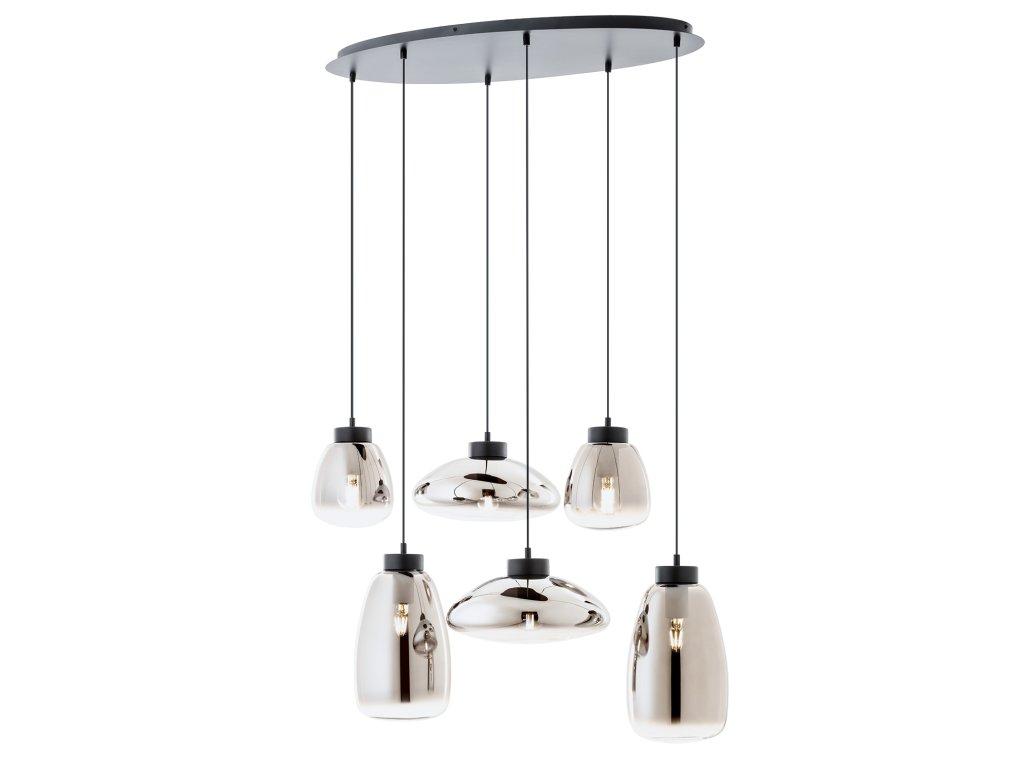 Závesné svietidlo do interiéru, kovová konštrukcia pieskovo čierna, difúzory z dymového skla.
