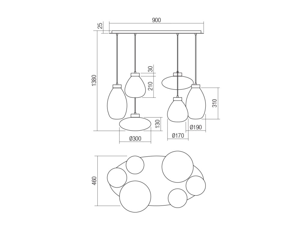 Závesné svietidlo Luke so šiestimi tienidlami, d.90cm