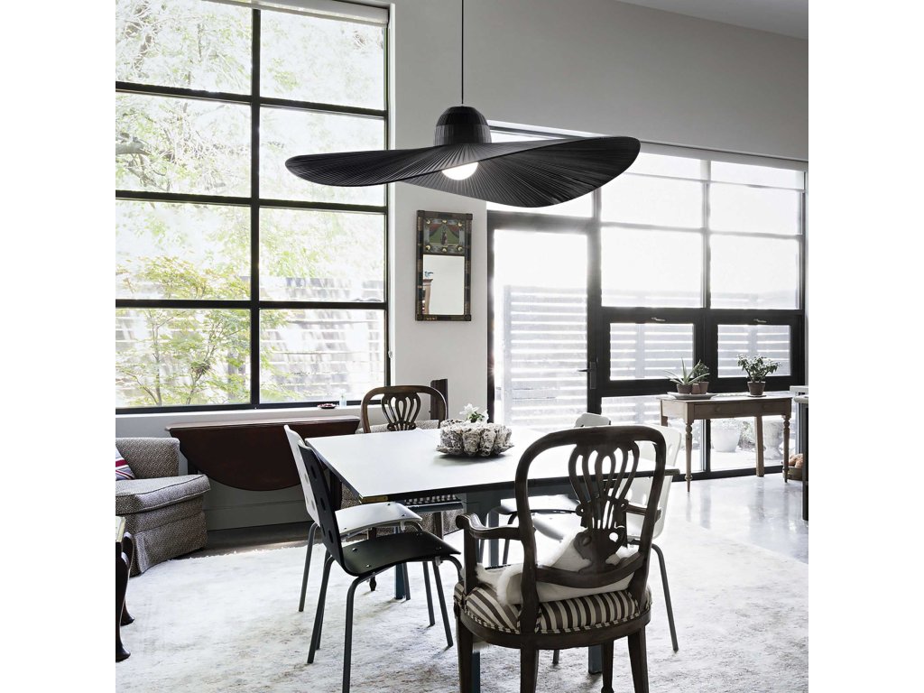 Úchvatné závesné svietidlo Madame s priemerom 110 cm v čiernej variante je elegantným doplnkom štýlového interiéru. Je osadené päticou E27 pre žiarovku s maximálnym príkonom 1 x 60 W. Dĺžka zavesenia je nastaviteľná pri inštalácii od 43 cm do 145 cm.Dodatočné parametre