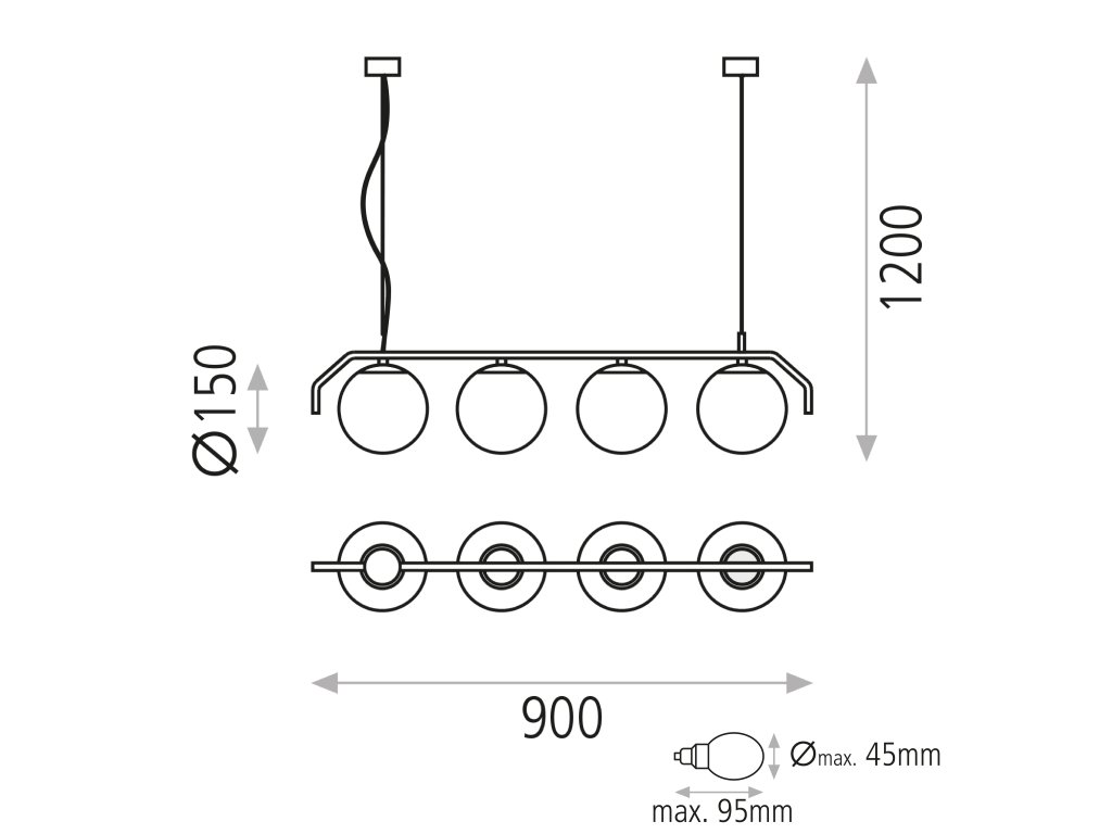 - 4 opálovo biele sklenené difúzory v tvare gule