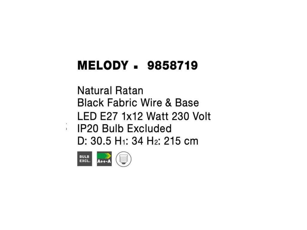 Závesné svietidlo MELODY prírodný ratan, 30,5 cm, E27 1x12W