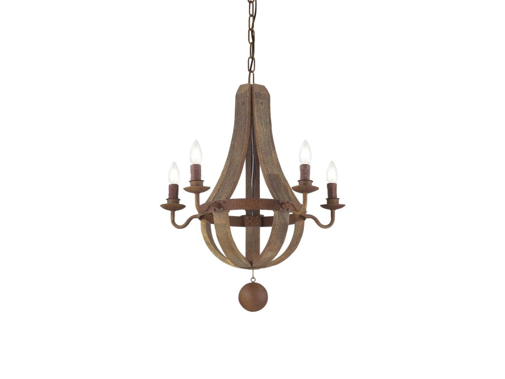 Obdivuhodné a monumentálne svietidlo Kovový rám a detaily sú lakované, akoby na kov účinkovala hrdza. Centrálne dekoračné prvky sú vyrobené z prírodného dreva, ručne ohýbané a upravené do starožitného dreva.Dodatočné parametre