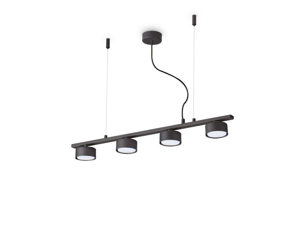 Závesné svietidlo Minor Linear SP4 z kolekcie interiérového osvetlenia talianskej značky Ideal Lux v menšej lineárnej verzii o celkovej dĺžke 75,5 cm vynikne svojim kvalitným spracovaním v každej moderne zariadenej obývacej izbe, jedálenskom kúte či pracovni. Rovnako sa svojim dizajnom hodí do kancelárií, rokovacích a zasadacích miestností veľkých obchodných korporácií. Jeho okrúhla základňa s priemerom 9 cm a tenký rám vysoký 4 cm so štyrmi okrúhlymi difúzormi s priemerom 8,5 cm sú vyrobené z kvalitného kovu s matne čiernou povrchovou úpravou nanášanou metódou práškovania. Plastový prívodný kábel čiernej farby je možné výškovo nastaviť od 10 cm do 219 cm dĺžky. Z rámu vedú dve závesné lanká na uchytenie k stropu. Svietidlo je osadené päticou GX53 s maximálnym príkonom 4 x 15 W. Súčasťou balenia sú LED žiarovky (obj. kód 101385) s príkonom 7W, svietivosťou 560lm a teplotou chromatickosti 3000K (neutrálne žlté svetlo). Ich výhodou je nízka spotreba elektrickej energie a dlhá doba životnosti až 25 000 hodín. Krytie IP20 je určené na vnútornú montáž do miest bez väčšej vlhkosti vzduchu.Dodatočné parametre