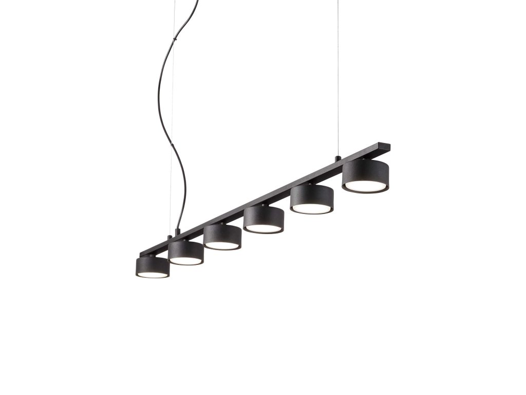 Závesné svietidlo Minor Linear SP6 z kolekcie interiérového osvetlenia talianskej značky Ideal Lux vo väčšej lineárnej verzii o celkovej dĺžke 115 cm vynikne svojim kvalitným spracovaním v každej moderne zariadenej obývacej izbe, jedálenskom kúte či pracovni. Rovnako sa svojim dizajnom hodí do kancelárií, rokovacích a zasadacích miestností veľkých obchodných korporácií. Jeho okrúhla základňa s priemerom 9 cm a tenký rám vysoký 4 cm so šiestimi okrúhlymi difúzormi s priemerom 8,5 cm sú vyrobené z kvalitného kovu s matne čiernou povrchovou úpravou nanášanou metódou práškovania. Plastový prívodný kábel čiernej farby je možné výškovo nastaviť od 10 cm do 219 cm dĺžky. Z rámu vedú dve závesné lanká na uchytenie k stropu. Svietidlo je osadené päticou GX53 s maximálnym príkonom 6 x 15 W. Súčasťou balenia sú LED žiarovky (obj. kód 101385) s príkonom 7W, svietivosťou 560lm a teplotou chromatickosti 3000K (neutrálne žlté svetlo). Ich výhodou je nízka spotreba elektrickej energie a dlhá doba životnosti až 25 000 hodín. Krytie IP20 je určené na vnútornú montáž do miest bez väčšej vlhkosti vzduchu.Dodatočné parametre