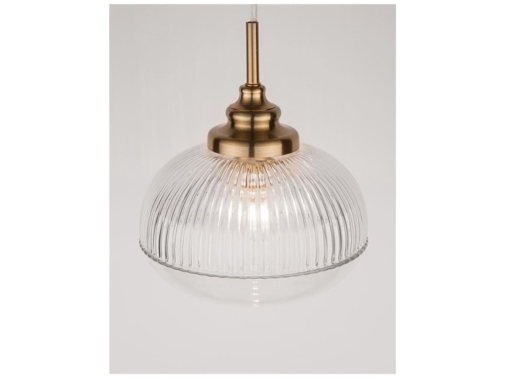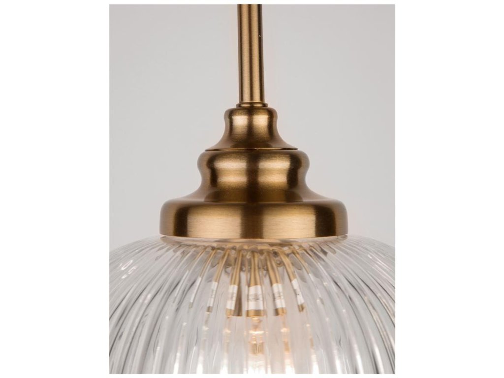 Závesné svietidlo MOND je k dispozícii v zlatej farbe so skleneným tienidlom. Svietidlo je vyrobené z kovu a skla. Rozmery svietidla sú 18x120 cm. Výška tienidla z číreho skla je 19,5 cm. Svietidlo odporúčame nad jedálenský stôl, do obývacej izby alebo do spálne. Žiarovka E14 nie je súčasťou balenia.Dodatočné parametre
