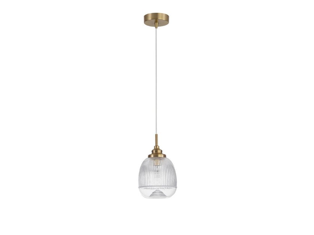 Závesné svietidlo MOND je k dispozícii v zlatej farbe so skleneným tienidlom. Svietidlo je vyrobené z kovu a skla. Rozmery svietidla sú 15x120 cm. Výška tienidla z číreho skla je 24 cm. Svietidlo odporúčame nad jedálenský stôl, do obývacej izby alebo do spálne. Žiarovka E14 nie je súčasťou balenia.
