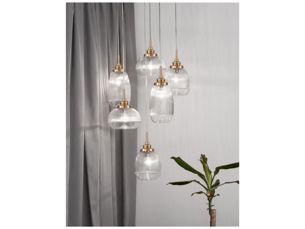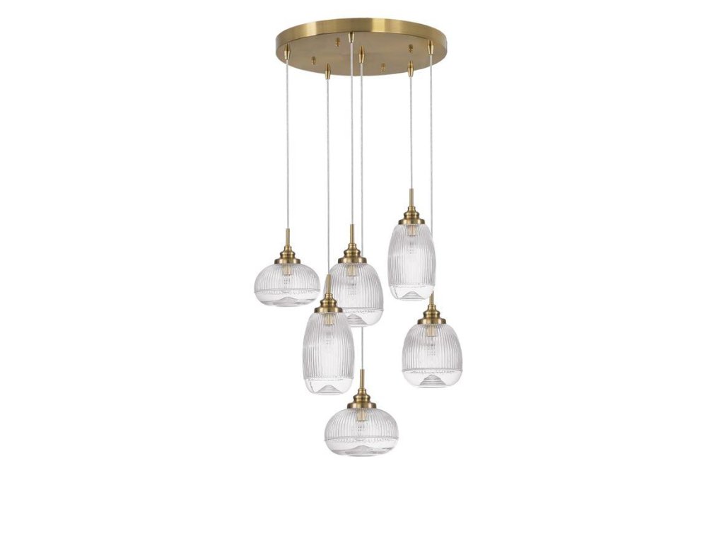 Závesné svietidlo MOND saténový zlatý kov číre sklo E14 6x5W