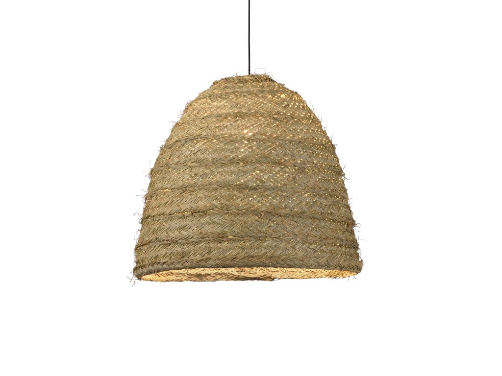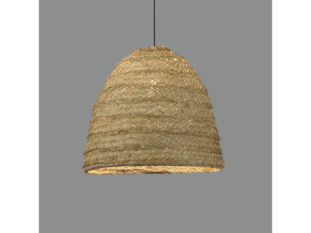 Stropné svietidlo s tienidlom vyrobené z prírodných vlákien rafie.
