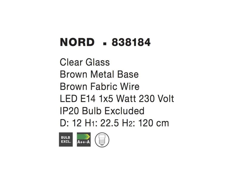 Závesné svietidlo NORD číre sklo hnedá kovová základňa E14 1x5W