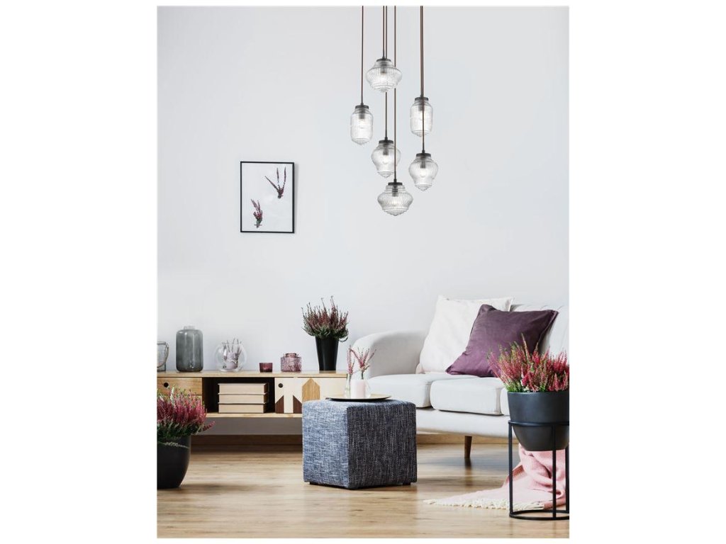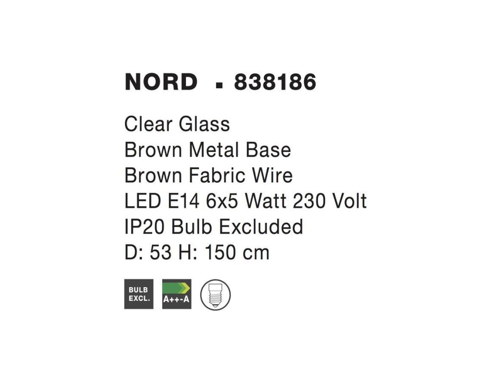 Závesné svietidlo NORD číre sklo hnedá kovová základňa E14 6x5W