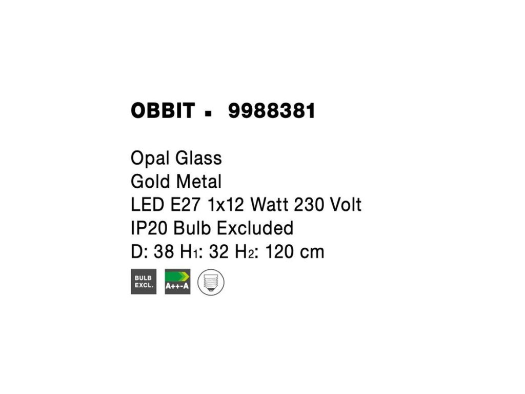 Závesné svietidlo OBBIT opálové sklo, 38cm, E27 1x12W