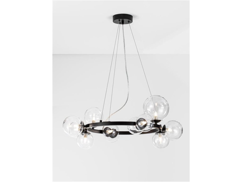 Závesné svietidlo ODILLIA je k dispozícii v čiernej farbe vo variantoch s tienidlom z číreho skla alebo tienidlom s dymovým sklom. Svietidlo je vyrobené z kovu a skla. Rozmery svietidla sú 65x120 cm. Sklenené tienidlá majú rôzny rozmer. Svietidlo odporúčame nad jedálenský stôl, do obývacej izby alebo spálne. Žiarovky G9 nie sú súčasťou balenia.Buďte prvý, kto napíše príspevok k tejto položke.