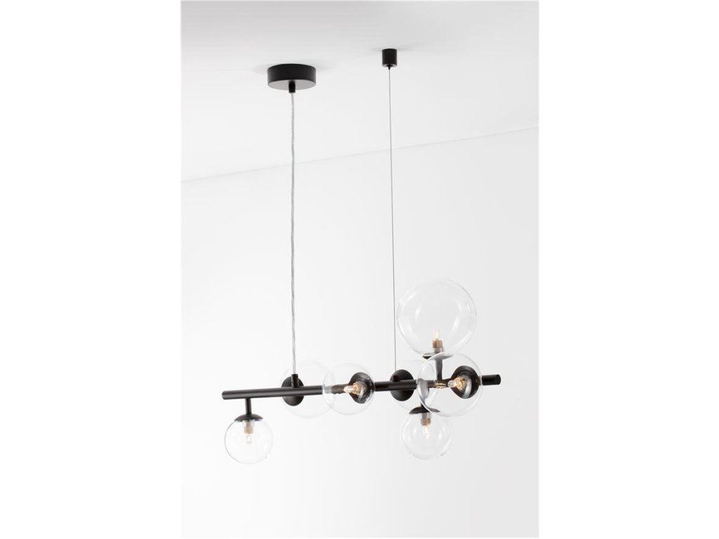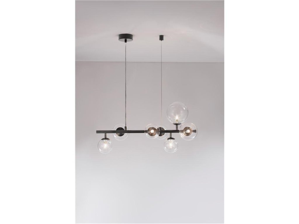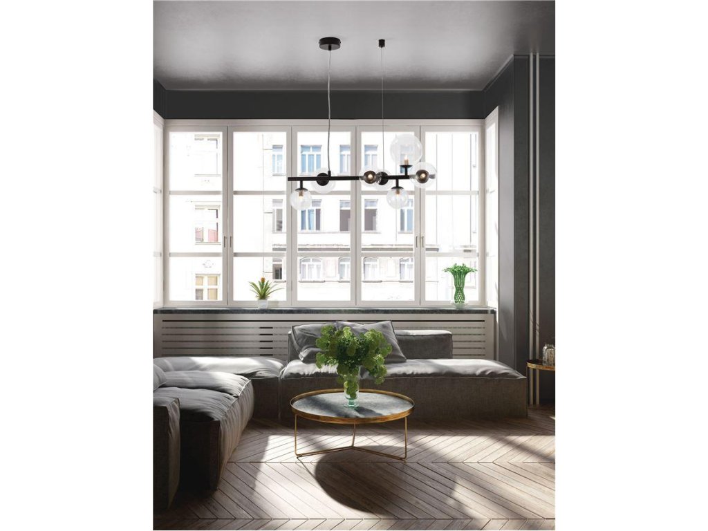 Závesné svietidlo ODILLIA je k dispozícii v čiernej farbe vo variantoch s tienidlom z číreho skla alebo tienidlom s dymovým sklom. Svietidlo je vyrobené z kovu a skla. Rozmery svietidla sú 65x120 cm. Sklenené tienidlá majú rôzny rozmer. Svietidlo odporúčame nad jedálenský stôl, do obývacej izby alebo spálne. Žiarovky G9 nie sú súčasťou balenia.Dodatočné parametre