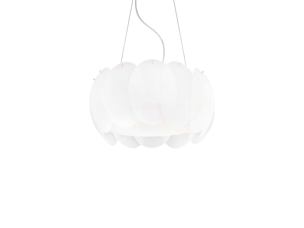 Závesné svietidlo Ovalino z kolekcie interiérového osvetlenia značky Ideal Lux v modernom prevedení je vhodné ako hlavné osvetlenie v jedálni, kuchyni či obývačke. Skladá sa z guľatej základne a rámu, ktoré sú zhotovené z kvalitného kovu s chrómovou povrchovou úpravou a sú doplnené o mohutný difúzor zložený zo zaoblených kruhových tabúľ vyrobených z matne bieleho skla leptaného kyselinou. Svietidlo je osadené päticami E27 pre žiarovky s maximálnym príkonom 5 x 60 W. Zdroje nie sú súčasťou balenia. Odporúčame zvoliť LED žiarovky na úsporu elektrickej energie. Krytie IP20 je vhodné pre vnútornú inštaláciu. Výšku závesu s automatickým systémom je možné regulovať od 28 do 120 cm. Celkové rozmery svietidla sú 120 x 44 x 44 cm. Je určené na napájanie zo siete na 220-240 V.Dodatočné parametre