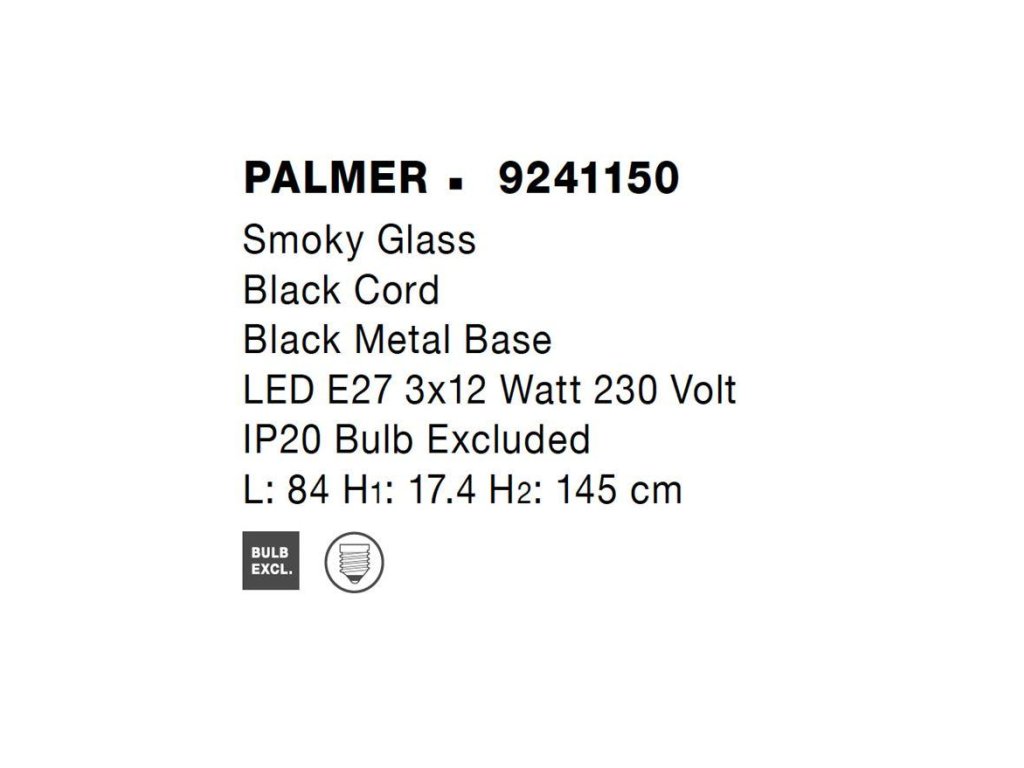 Závesné svietidlo PALMER dymové sklo čierny kábel čierna kovová základňa E27 3x12W