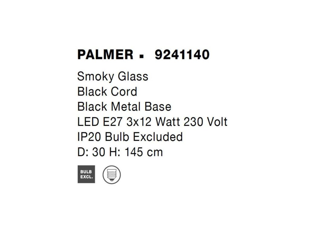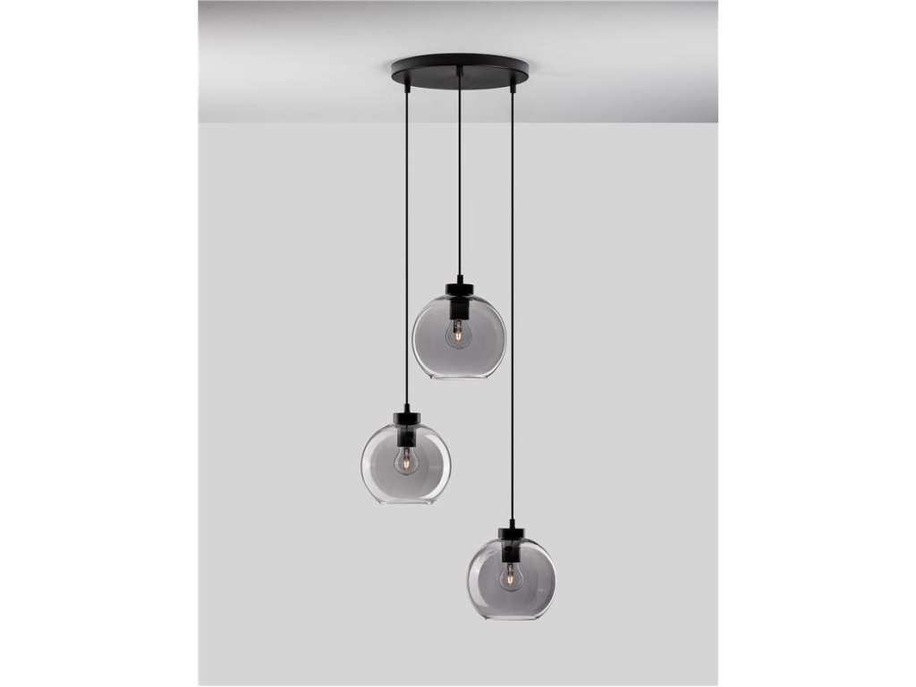 Závesné svietidlo PALMER dymové sklo čierny kábel čierna kovová základňa E27 3x12W
