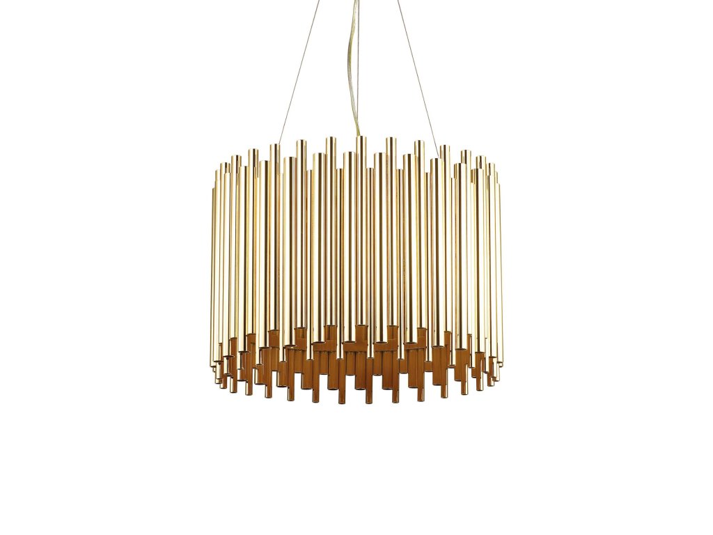 Luxusný závesný luster PAN SP5 z kolekcie dizajnového osvetlenia Ideal Lux s priemerom 47 cm sa stane ozdobou každého interiéru. Krásne nasvieti obývací priestor, jedáleň alebo spálňu. Svietidlo tvorí kovová stropná základňa s priemerom 14,5 cm a tienidlo, ktoré je zložené z kovových trubiek v dvoch rôznych dĺžkach so zlatou povrchovou úpravou. Vnútri sa skrývajú pätice E27 s maximálnym príkonom 5 x 60 W. Žiarovky nie sú súčasťou balenia, odporúčame použiť úsporné LED svetelné zdroje s dlhou životnosťou. Dĺžku zavesenia oceľových laniek je možné flexibilne nastaviť podľa potreby pri inštalácii od 50 cm do 151 cm. Krytie IP20 vyjadruje vhodnosť na použitie v interiéri.Dodatočné parametre