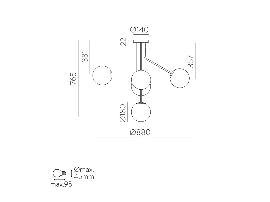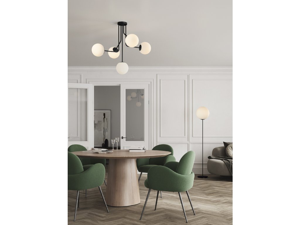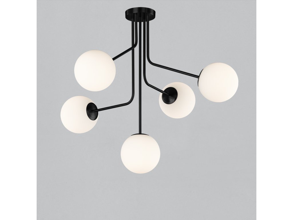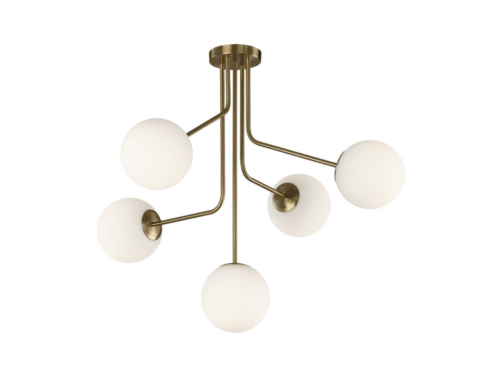 Stropné svietidlo Parma v modernom štýle. Upozorňuje na svoj originálny a nápadný dizajn, s piatimi svetelnými bodmi v rôznych smeroch, s guľovými sklenenými tienidlami. Toto svietidlo je ideálne pre osvetlenie vašej obývačky alebo jedálne, kde bude pôsobiť ako neprehliadnuteľný, výrazný prvok miestnosti. Vzhľadom k vyššiemu stupňu krytia (IP44 - ochrana proti striekajúcej vode), môže byť svietidlo inštalované aj do kúpeľne alebo do vlhších priestorov.