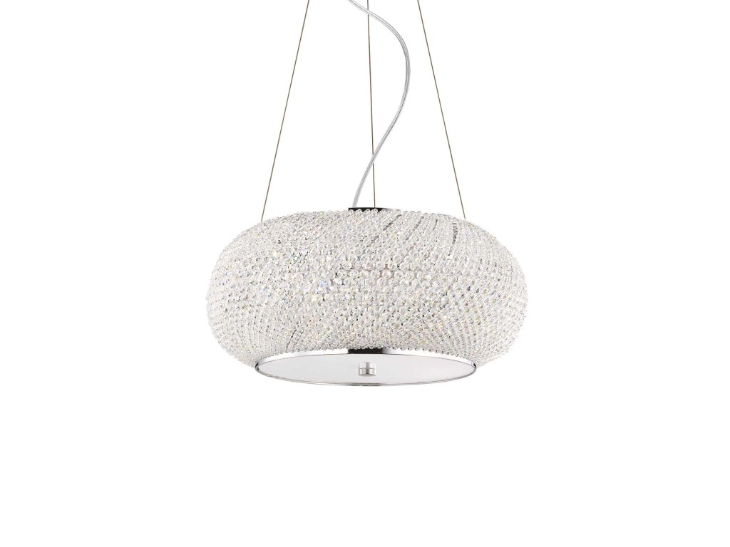 Závesný luster Pasha značky Ideal Lux v krištáľovom prevedení s priemerom 45 cm ponúkne ideálne osvetlenie obývacej izby, spálne či kuchyne. Rám svietidla je zhotovený z kovu s chrómovou povrchovou úpravou. Dominantou svietidla je difúzor zložený zo šnúrok brúsených krištáľových perál. Spodnú časť kryje sklenená pieskovaná tabuľa. Svietidlo je osadené päticami E14 pre žiarovky s maximálnym príkonom 6 x 40 W. Zdroje nie sú súčasťou balenia. Odporúčame zvoliť LED žiarovky, ktoré šetria elektrickú energiu. Výšku zavesenia lustra je možné flexibilne nastaviť podľa potreby pri inštalácii svietidla od 25 cm do 234 cm. Krytie IP20 je vhodné na použitie do interiéru. Celkové rozmery svietidla sú 234 x 45 x 45 cm. Je určené na napájanie zo siete na 220-240 V.Dodatočné parametre