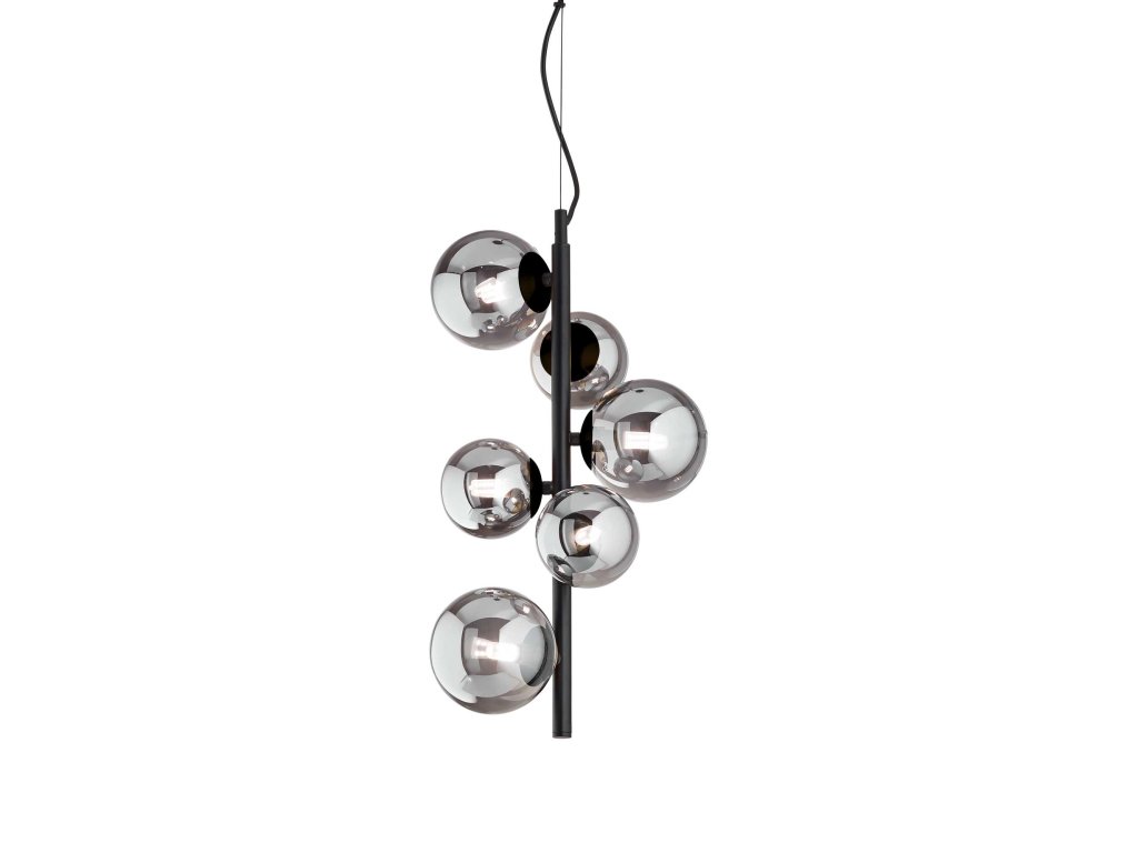 - okrúhla základňa o priemere 9 cm a tenký rám svietidla sú zhotovené z kvalitného kovu čiernou povrchovou úpravou doplnenou o 6 difuzorov z dymového fúkaného skla.