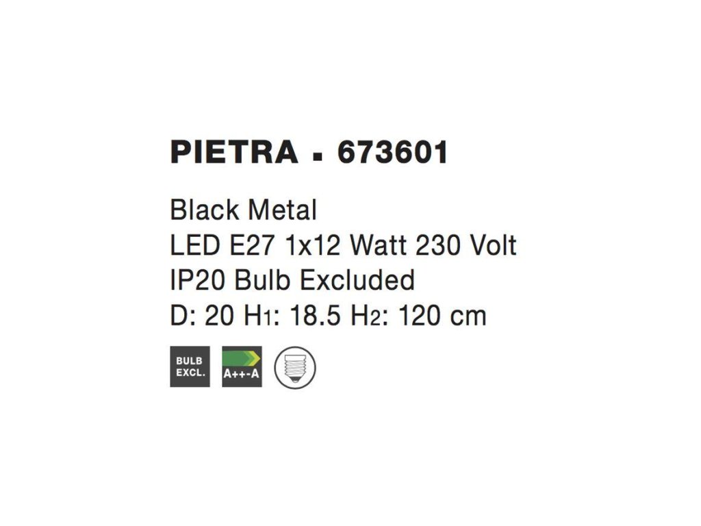 Závesné svietidlo PIETRA matný čierny kov E27 1x12W
