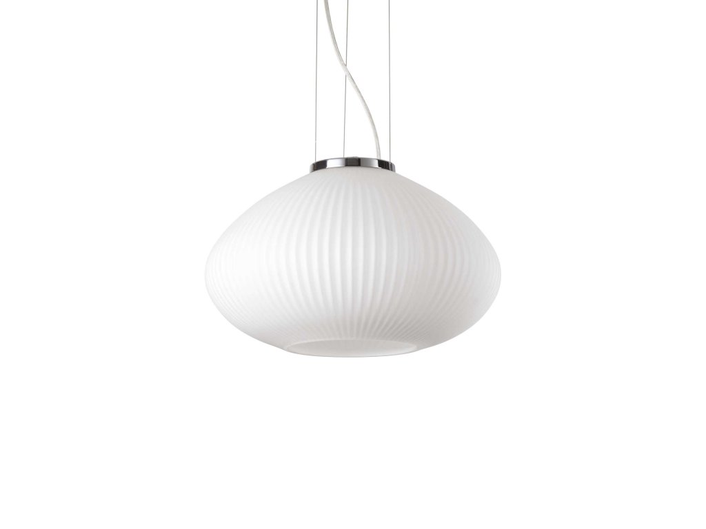 Závesné svietidlo PLISSE' z kolekcie dizajnového osvetlenia značky Ideal Lux v stredne veľkej verzii s priemerom 35 cm sa skvele hodí na osvietenie moderne zariadených interiérov, dokonale zapadne do kuchyne, jedálne či obývacej izby S krytím IP20 nie je vhodné do miestností s výskytom vyššej vlhkosti1. Dominantou svietidla je mohutný vrúbkovaný difúzor z fúkaného leptaného skla, ktorý je osadený päticou E27 pre žiarovku s maximálnym príkonom 1 x 60 W (zdroj nie je súčasťou balenia) Tienidlo je zavesené na čírom plastovom prívodnom kábli x 3 cm. určené na napájanie zo siete na 220-240V.Dodatočné parametre