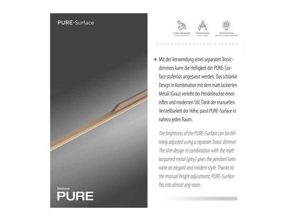 Závesné svietidlo PURE Surface 160x25 nastaviteľná výška 3000K bronz - PAUL NEUHAUS