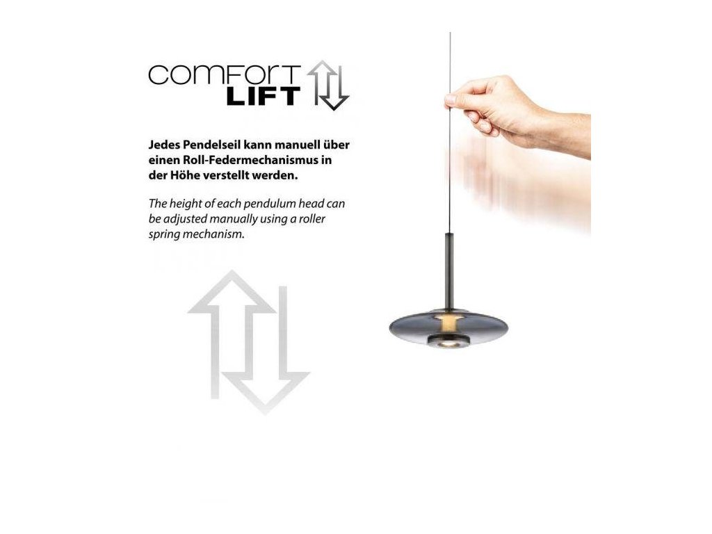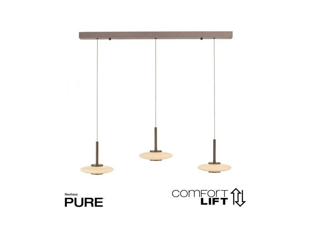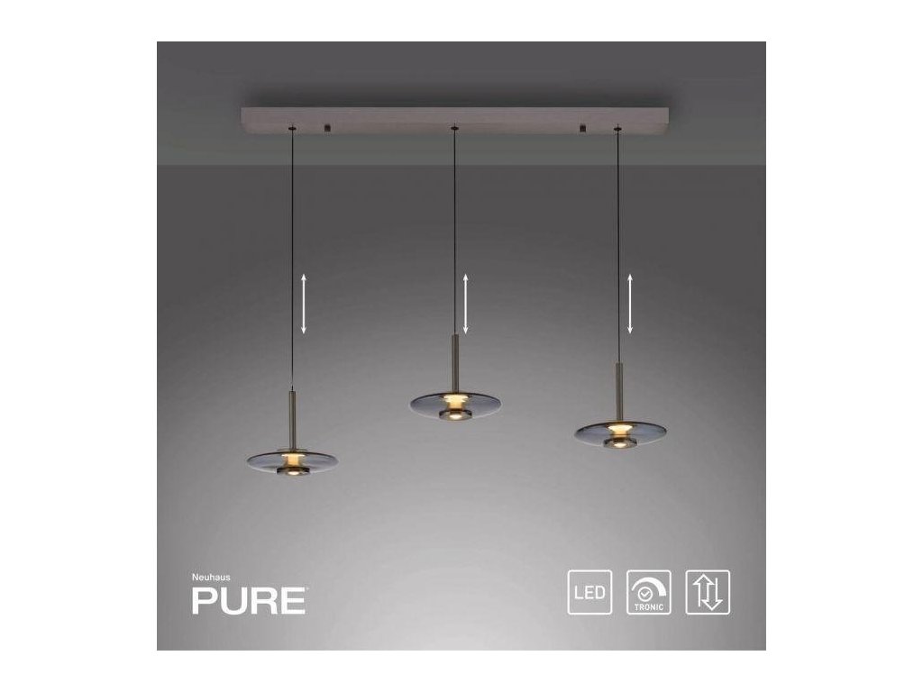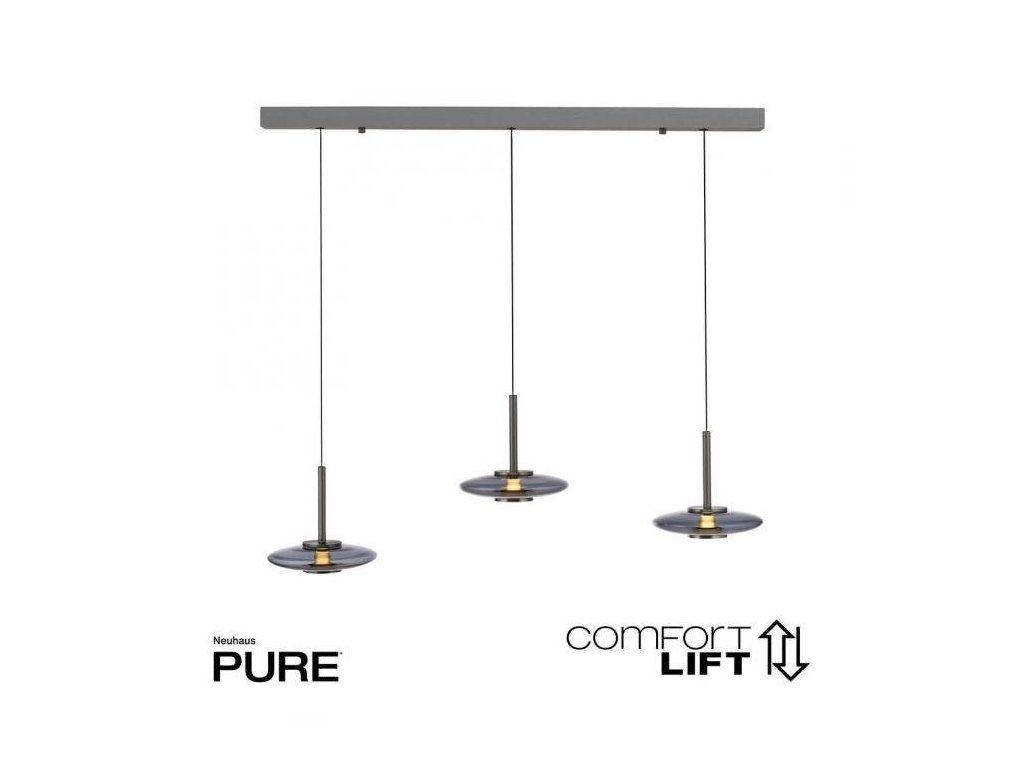 Závesné svietidlo PURE Vitrum 3 ramenné Comfort Lift 2700K platina/dymová - PAUL NEUHAUS