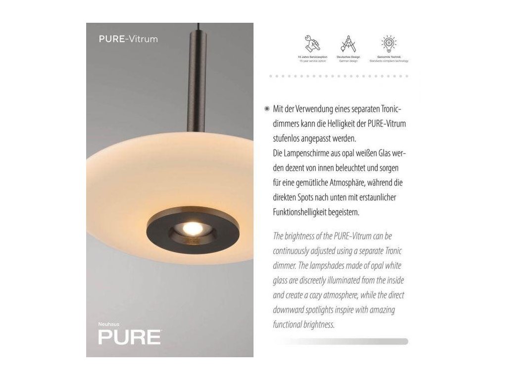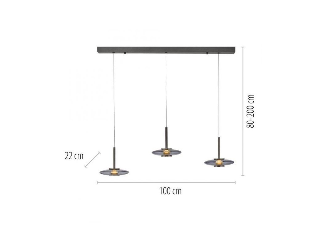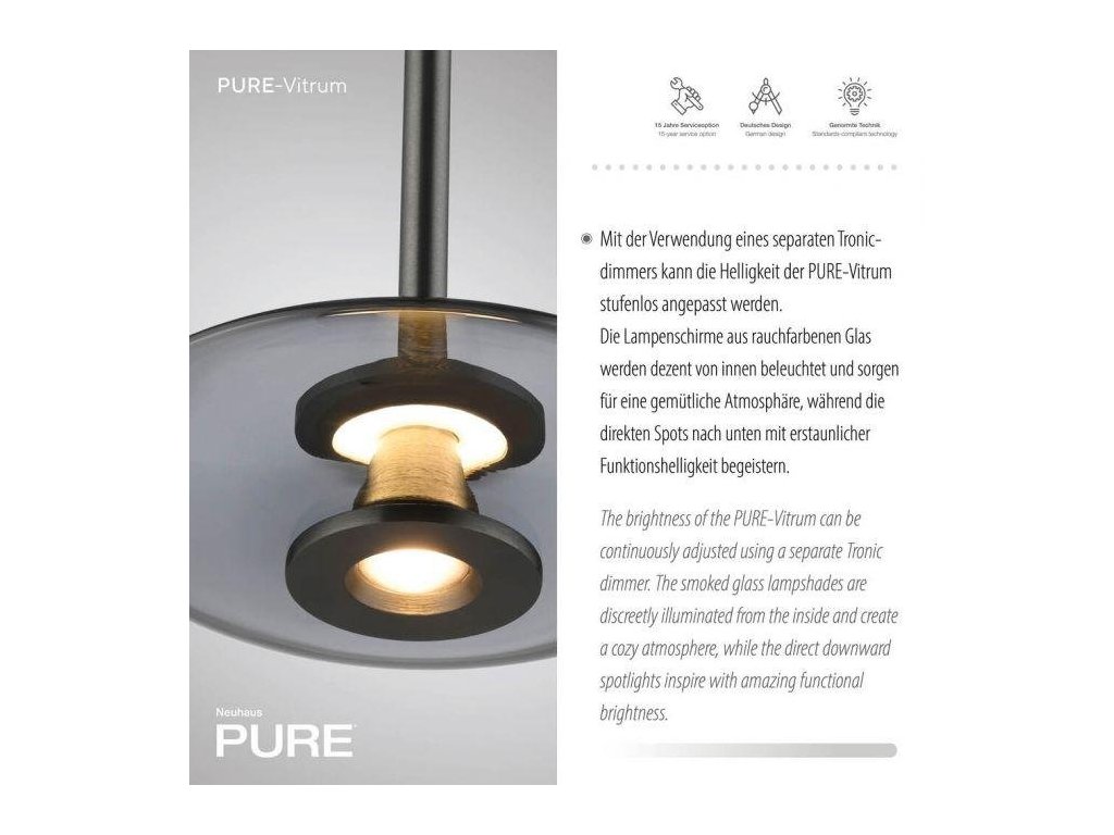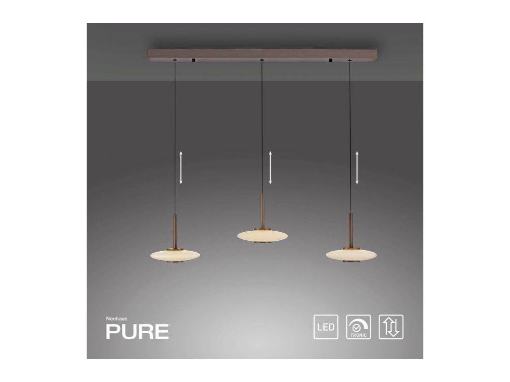 Závesné svietidlo PURE Vitrum 3 ramenné Comfort Lift 2700K platina/dymová - PAUL NEUHAUS