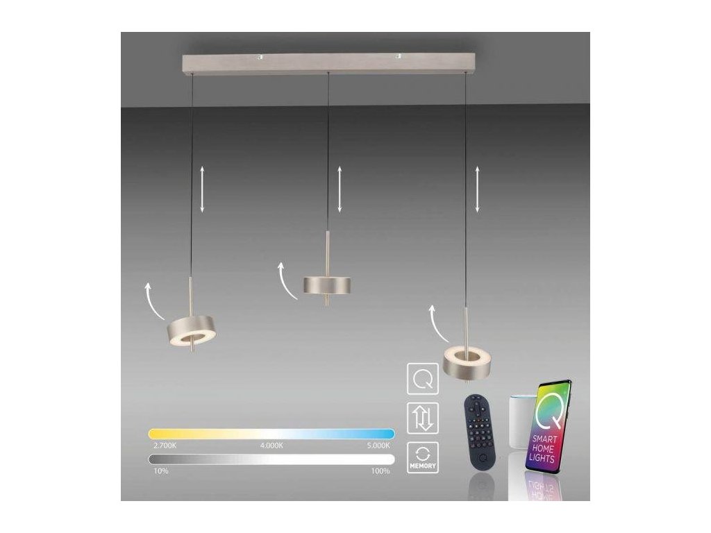 Závěsné LED svítidlo Q-ROTATE, 30W, d. 95 cm, CCT 2700-5000K (Barva Hliník)